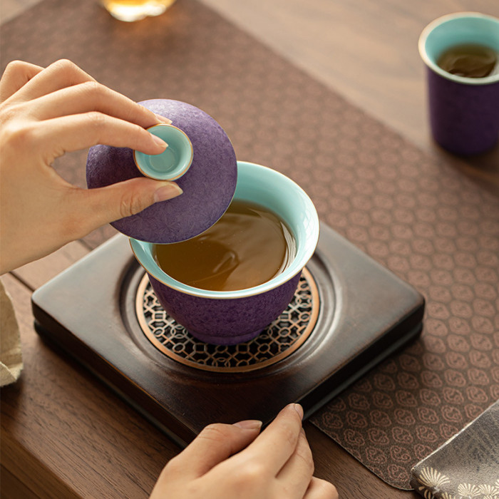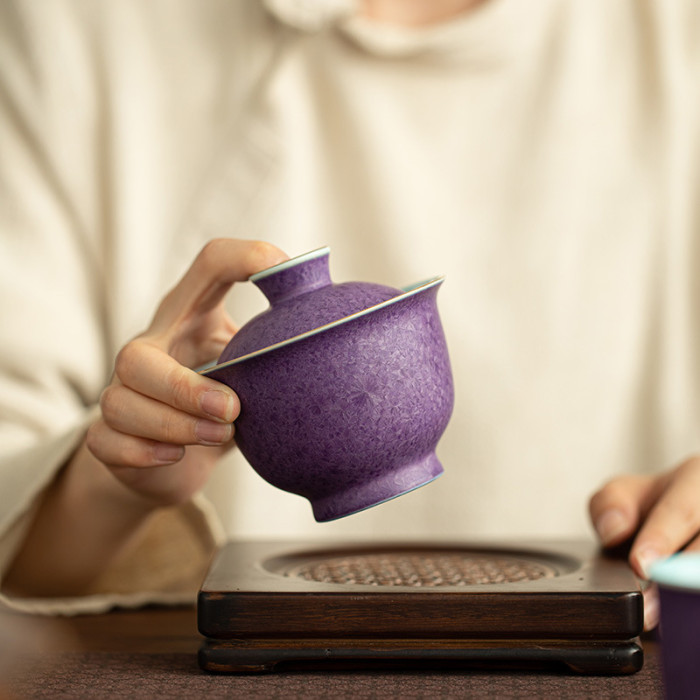 顔色 結晶釉-兩才蓋碗(紫結晶)禮盒裝