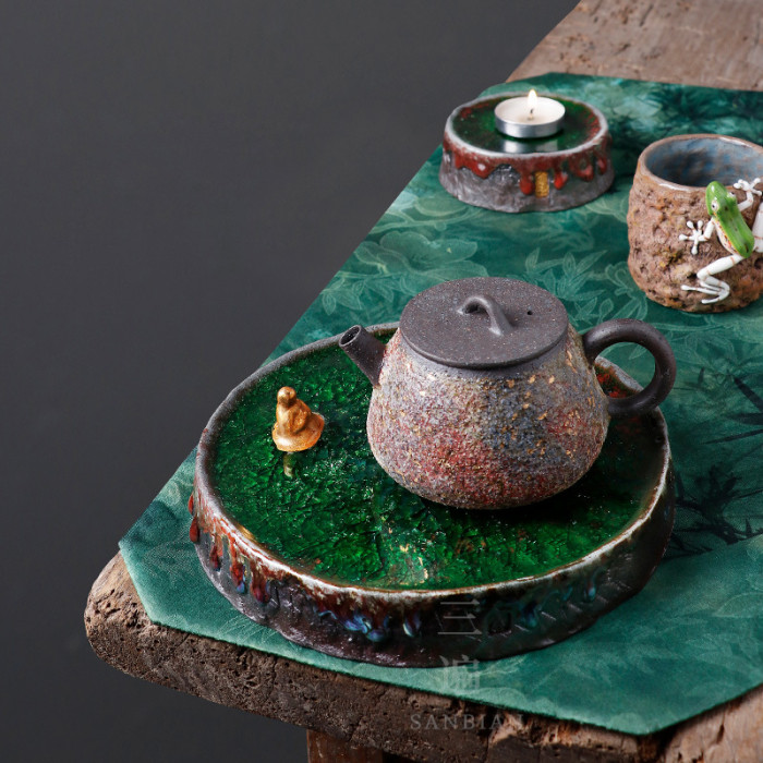 【孤品手作】柴燒壺承 創意敦煌實心乾泡台ins風禪意功夫零配茶承