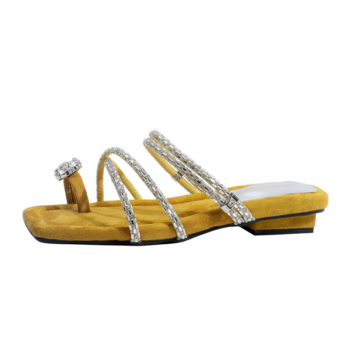 胖腳加寬加肥大碼女鞋夏季新款歐若風幻彩閃鑽交叉帶方頭兩穿涼鞋