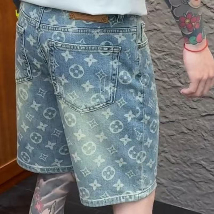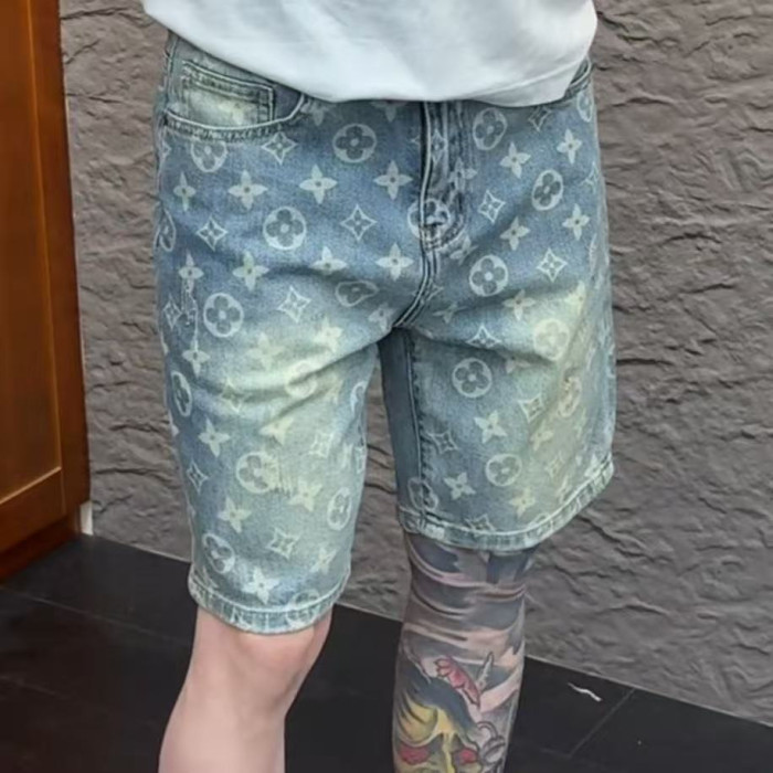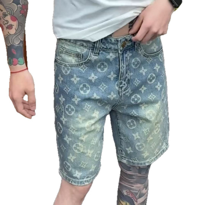 牛仔印花短褲新款夏季男士五分褲美式修身潮牌潮流百搭褲子中褲