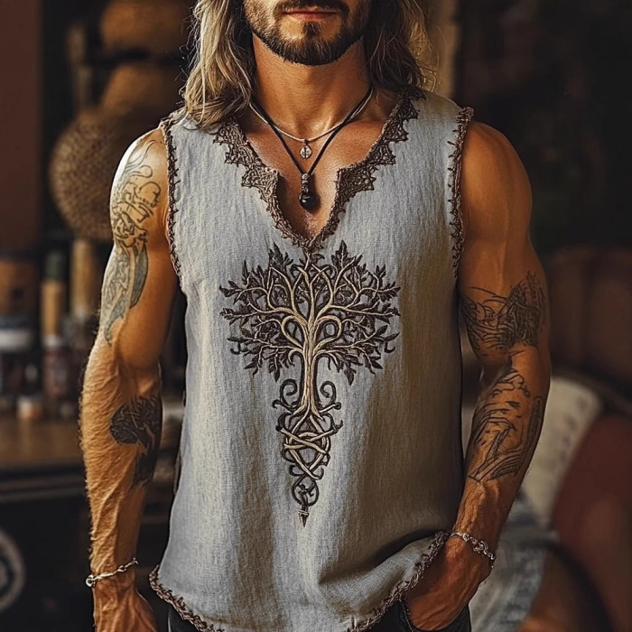 歐美夏季男士麻料短袖寬松休閒圓領T恤3D民族風數碼印花短袖