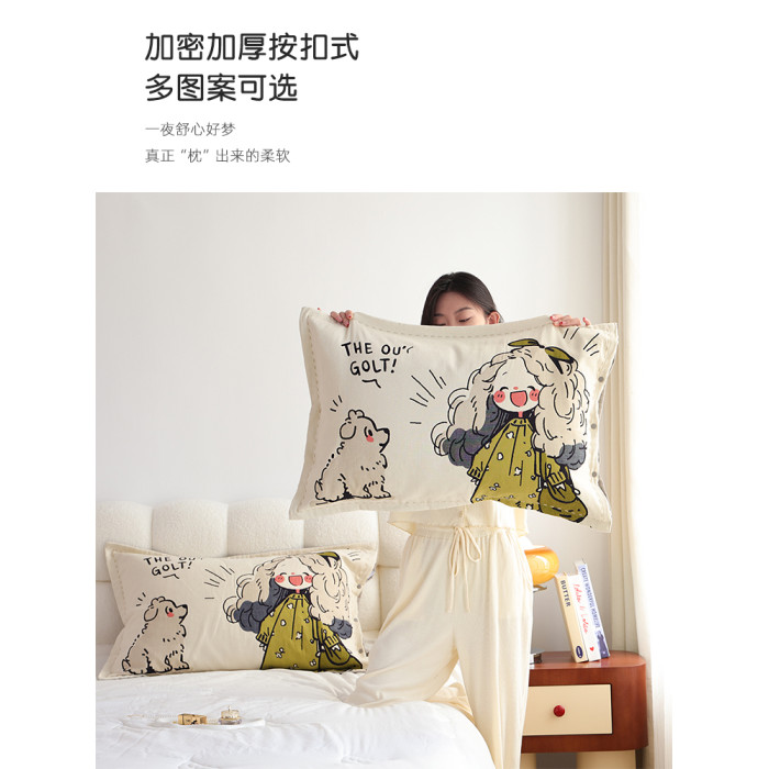 按釦純棉紗布枕套一對裝成人家用枕芯內膽套全包親膚全棉厚枕頭套