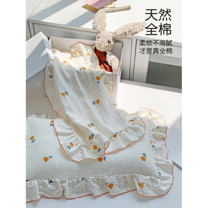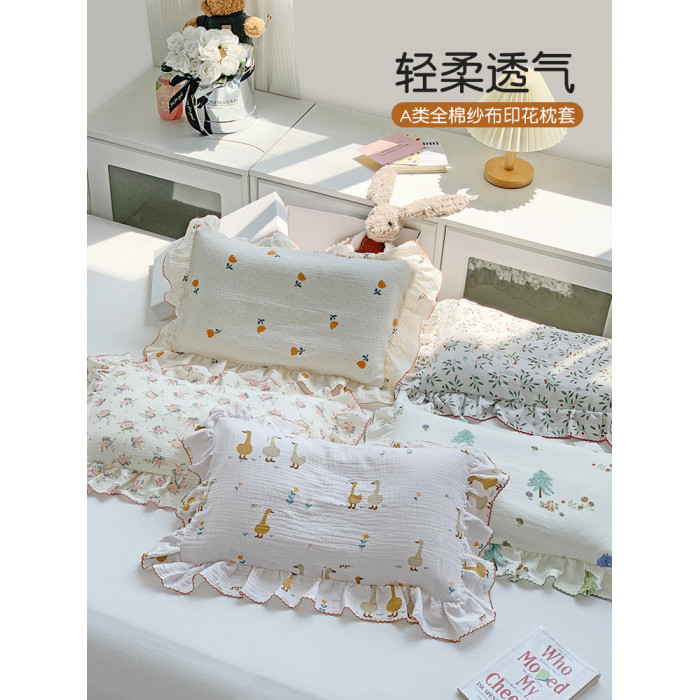 夏季荷葉邊全棉紗布卡通兒童枕套純棉女寶寶乳膠枕頭套枕芯套枕巾