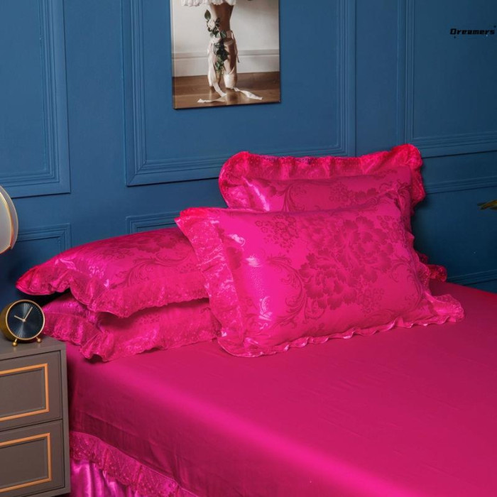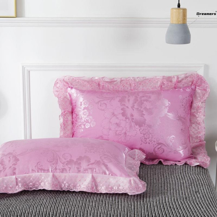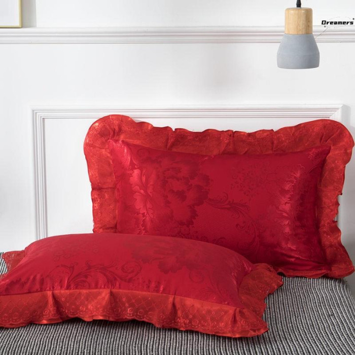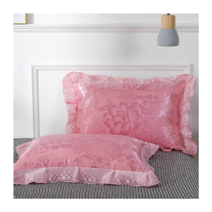 貢緞提花枕頭套一對裝枕套大號單人1對成人高檔情侶蕾絲