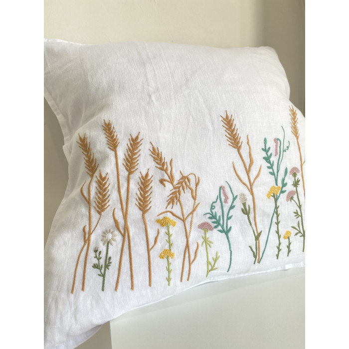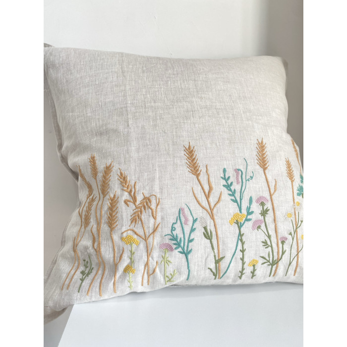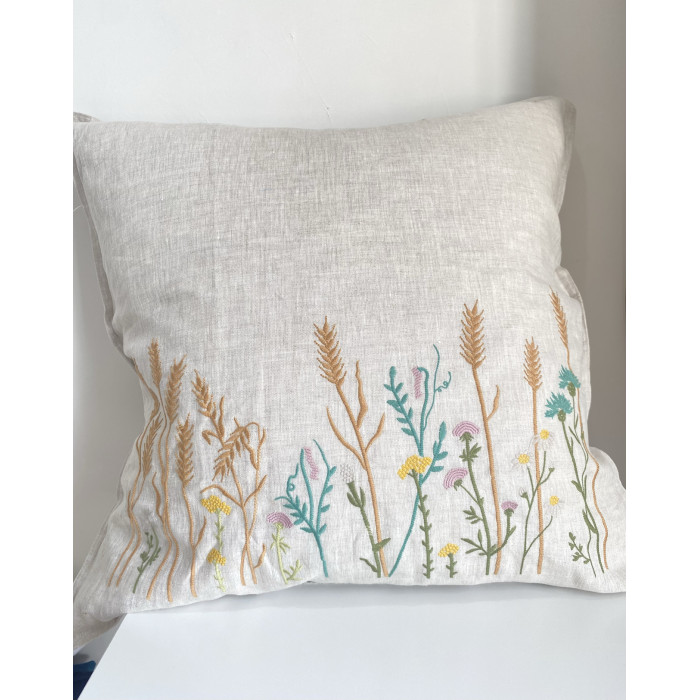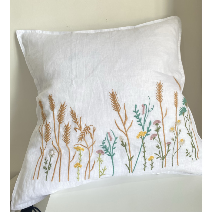 精緻刺綉純亞麻抱枕套50*50歐枕套不含芯