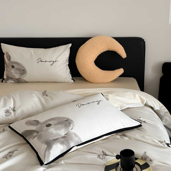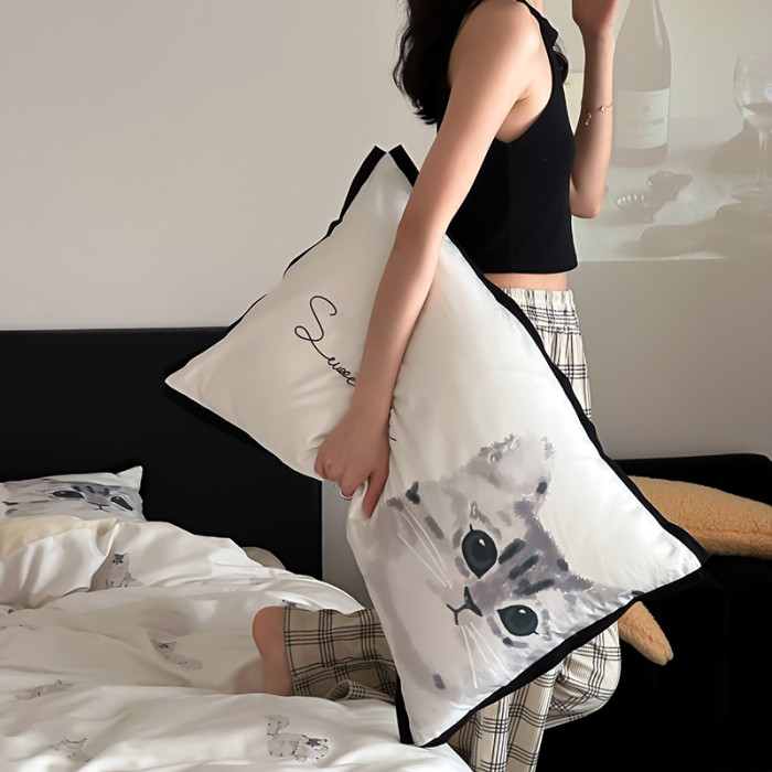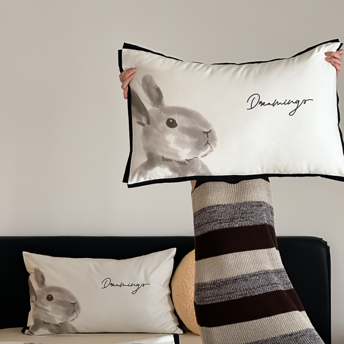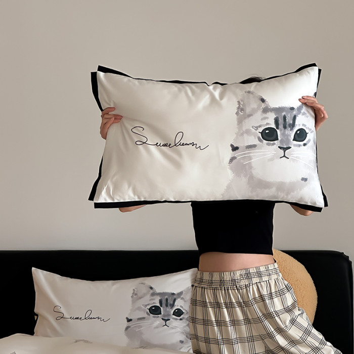 100支長絨棉枕套單衹裝 48*74卡通可愛貓咪兔兔單人枕頭套枕皮