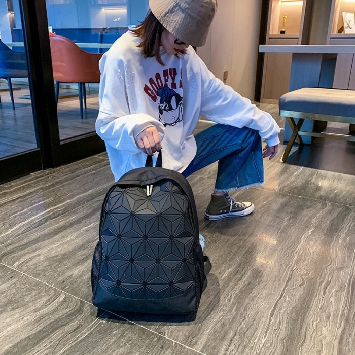 雙肩包女旅行包大學生書包男韓版菱形時尚後背包街頭幾何包