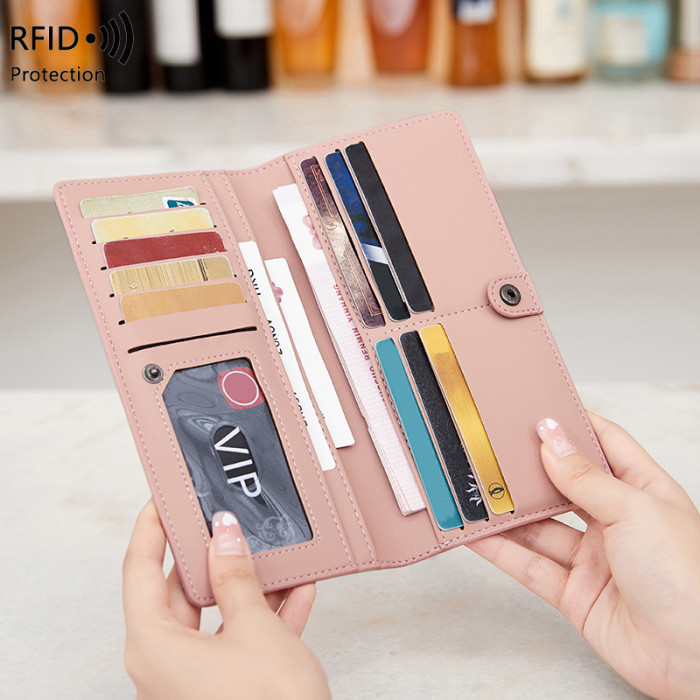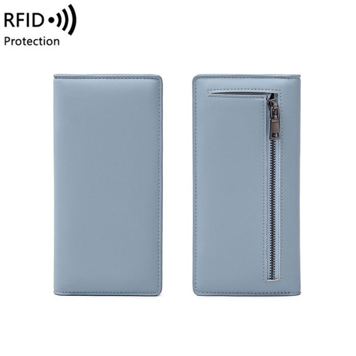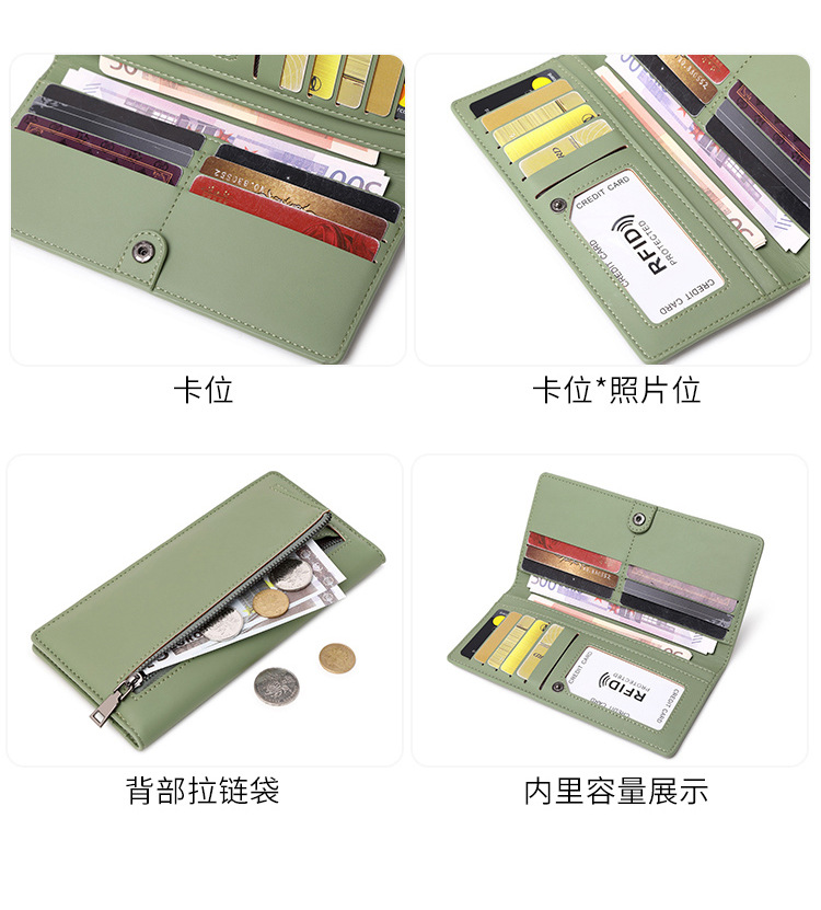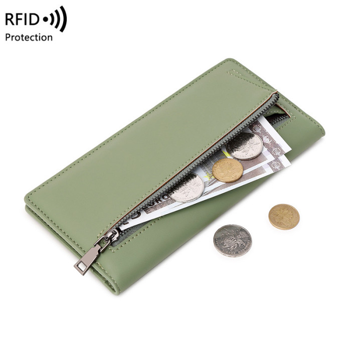 RFID防盜刷女士長錢包2024新款PU簡約超薄卡包可攜式拉鍊多卡位錢夾