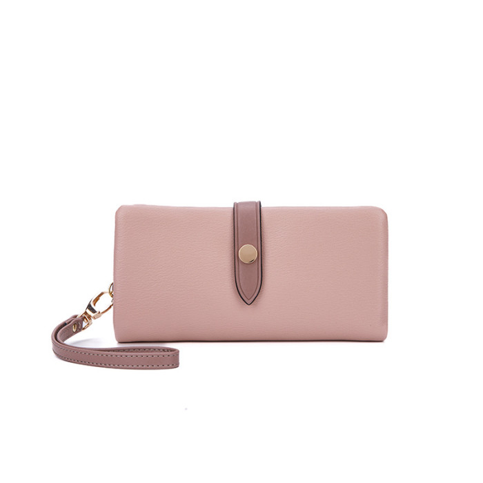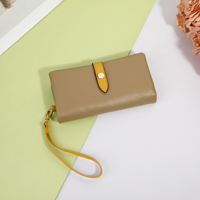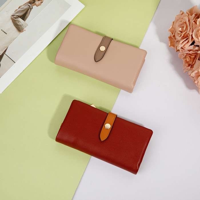 簡約撞色可攜式女士長錢包2024新款多功能卡包大容量學生手提零錢包