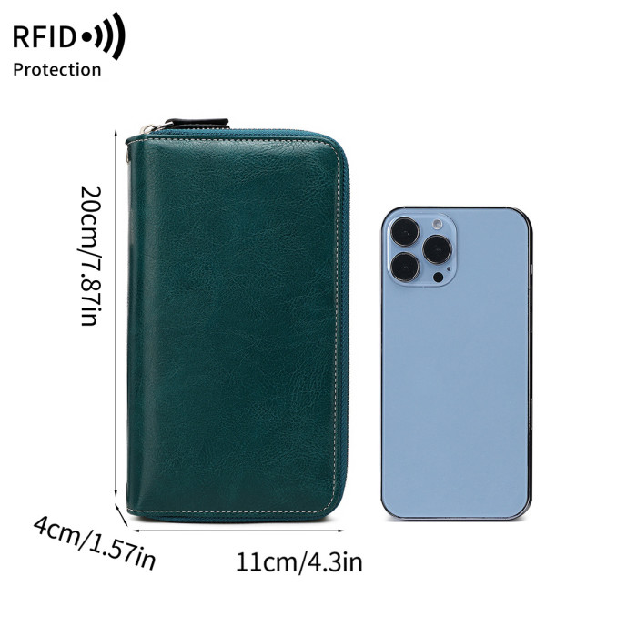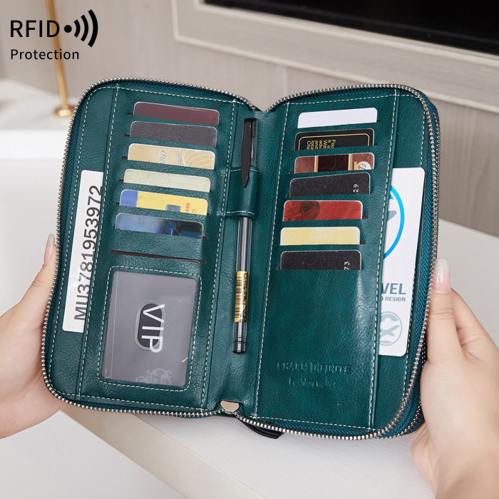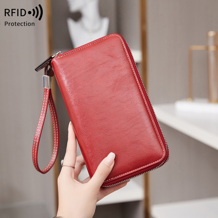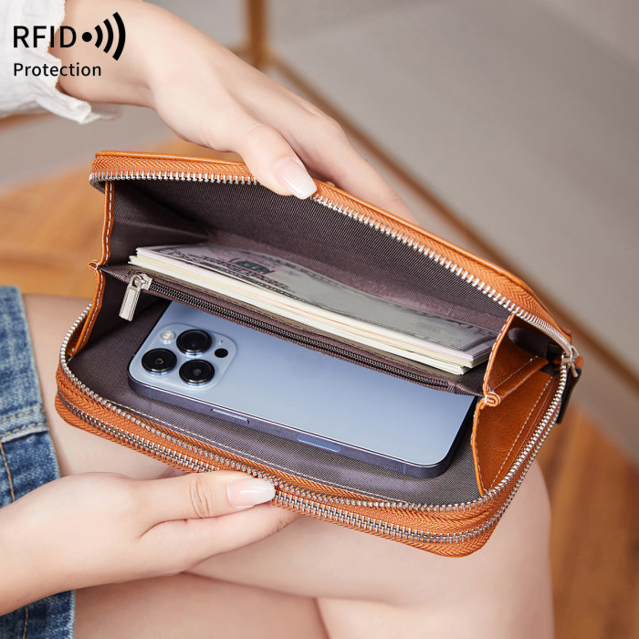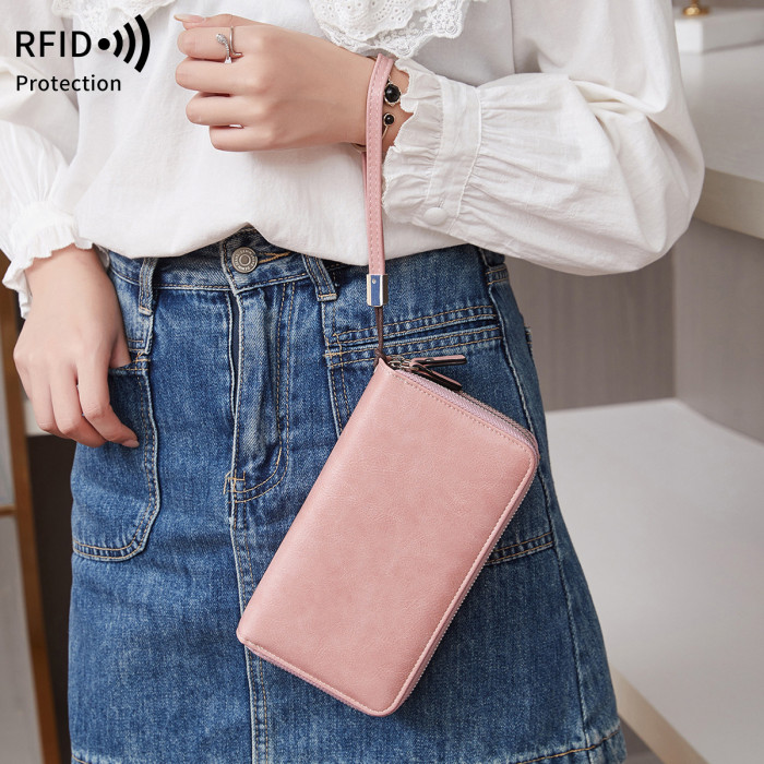 RFID雙層拉鍊大容量長錢包2024新款多功能可攜式收納卡包