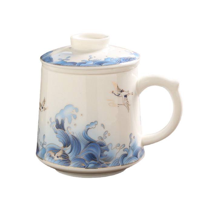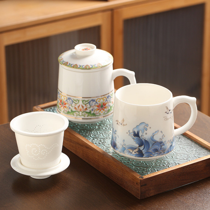 國潮風三件套帶過濾陶瓷馬克杯辦公室茶水分離杯商務節慶禮品杯子
