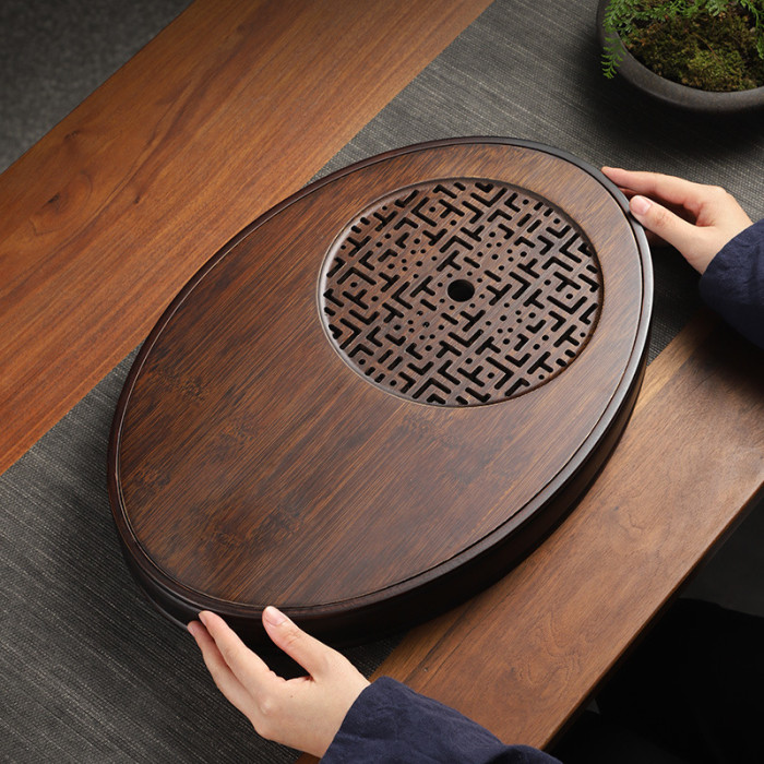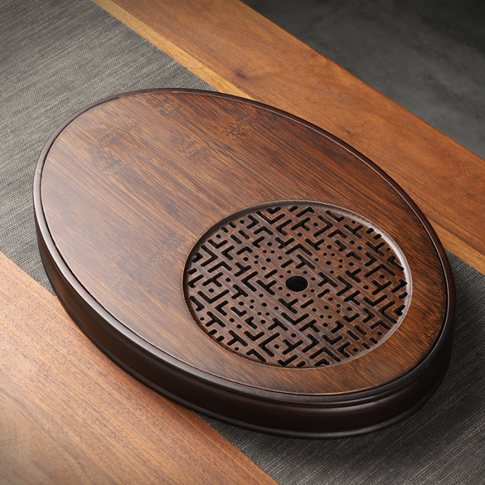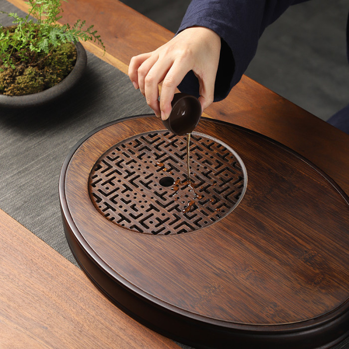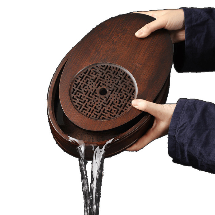 竹製茶台瀝水小茶盤橢圓瀝水小型家用托盤簡約茶具乾泡台儲水式