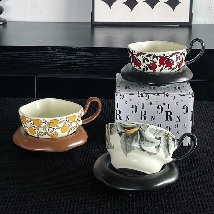 小衆設計陶瓷杯碟套裝家用辦公馬克杯中古咖啡杯子輕奢高級感