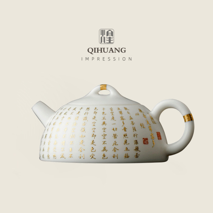 起煌高級堆金心經茶壺羊脂玉瓷手工功夫茶具半月壺泡茶單壺伴手禮