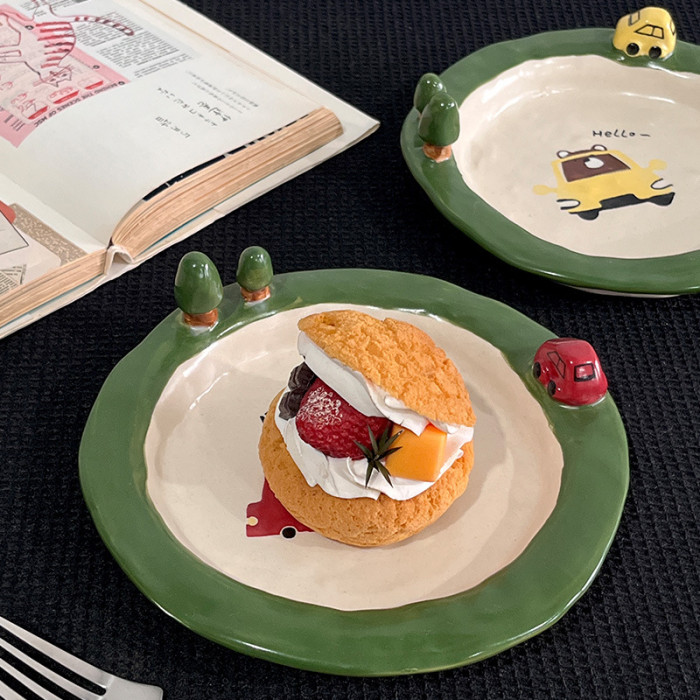 釉下彩手繪餐具可愛手捏盤童趣手作沙拉盤水果早餐甜品碗高顔值