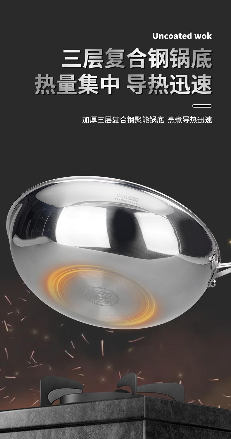 18-10三層鋼不沾鍋32cm家用炒菜鍋無塗層爆炒鍋電磁爐不挑爐灶