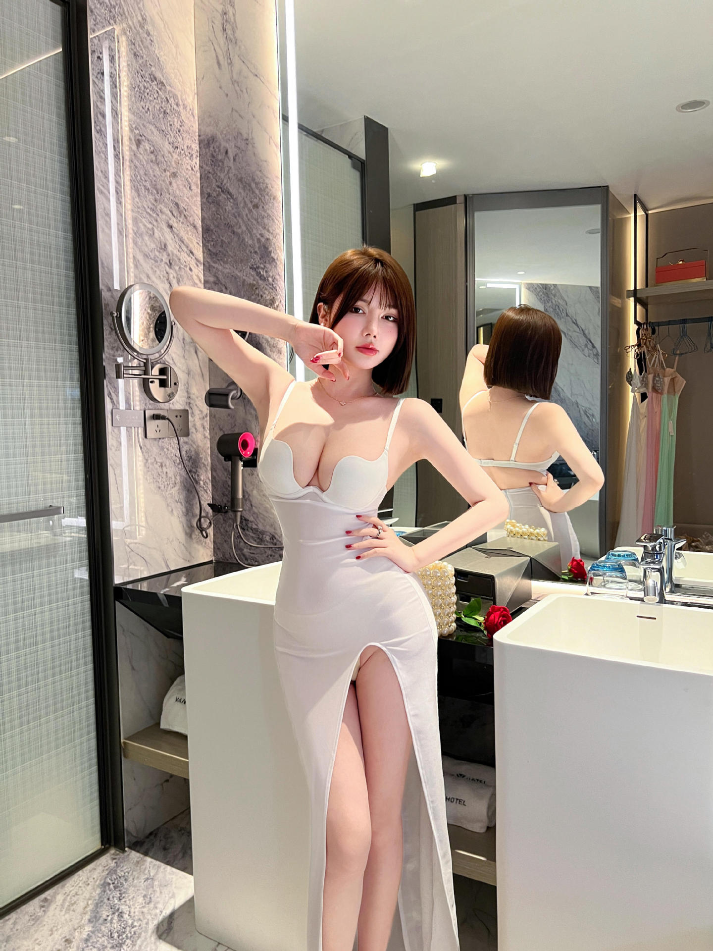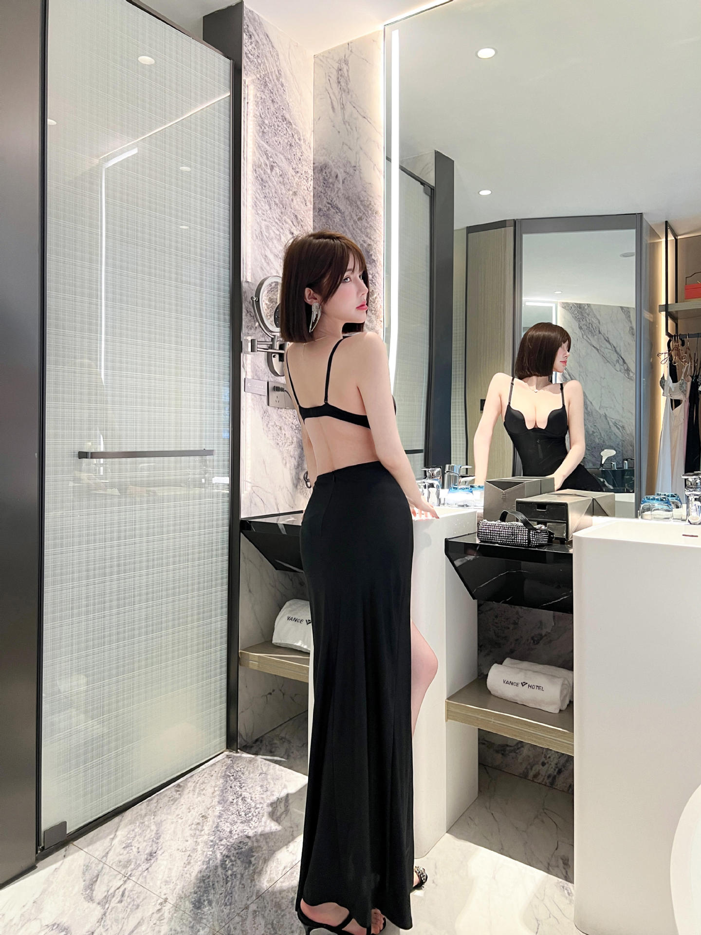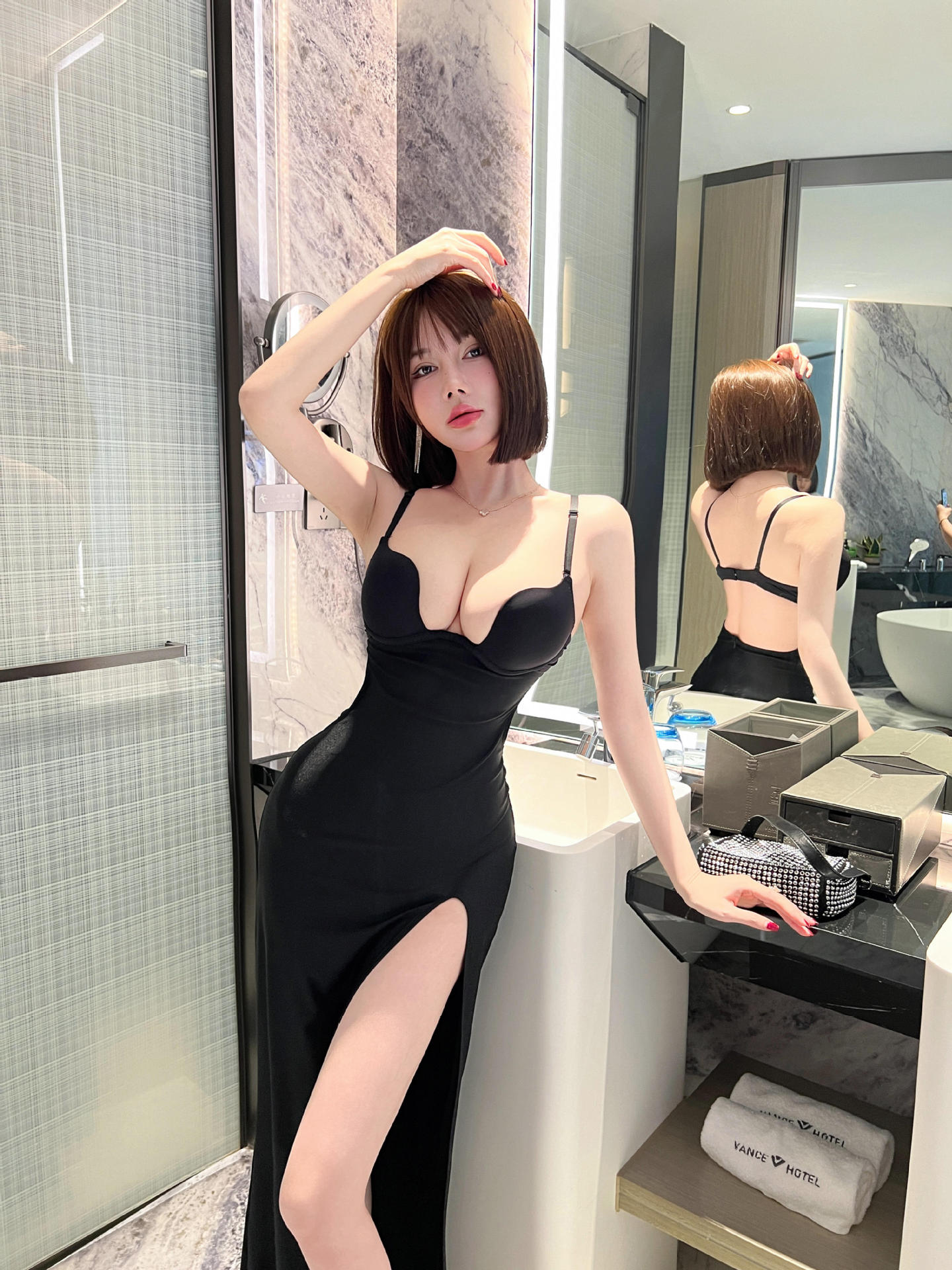 25年新款性感吊帶連衣裙U型杯深V聚攏高開叉漏背長裙桑拿技師工服