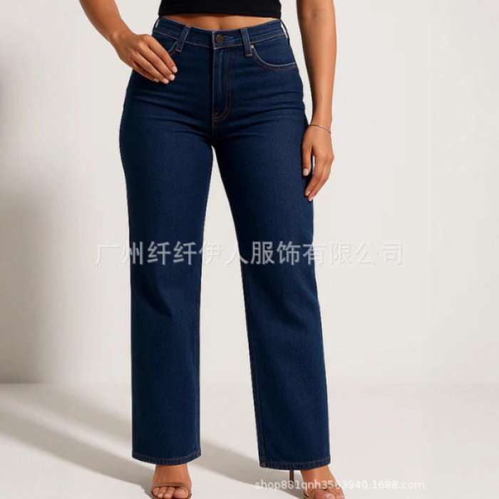 歐美新款牛仔褲女復古大碼女裝修身顯瘦時尚長褲女