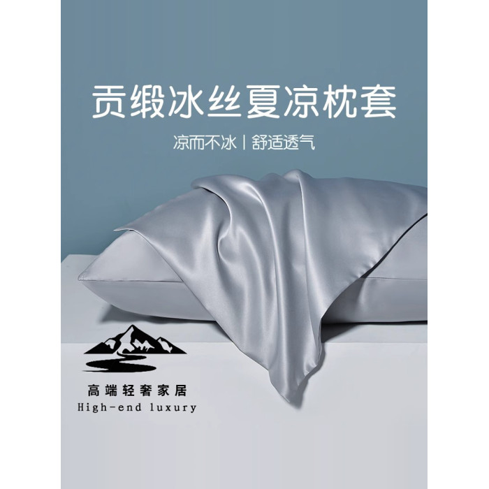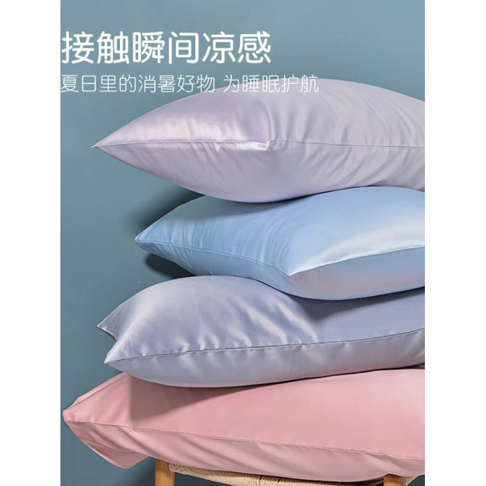 日本夏季2025新款夏季冰絲枕套涼爽透氣高級純色冰絲一對裝枕頭套