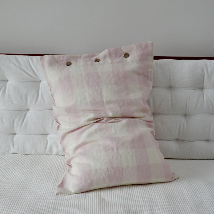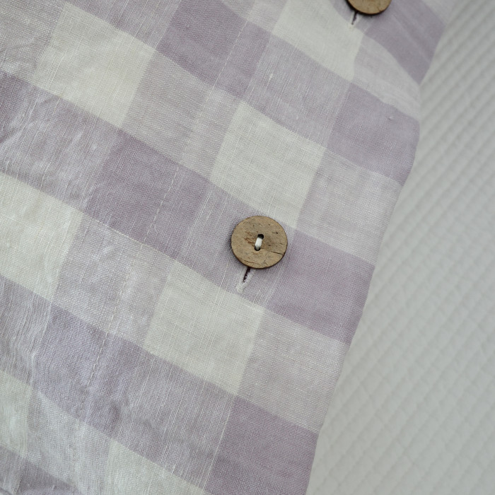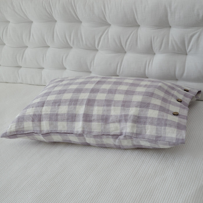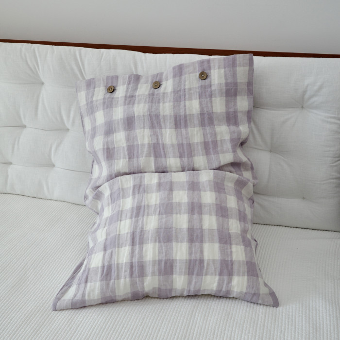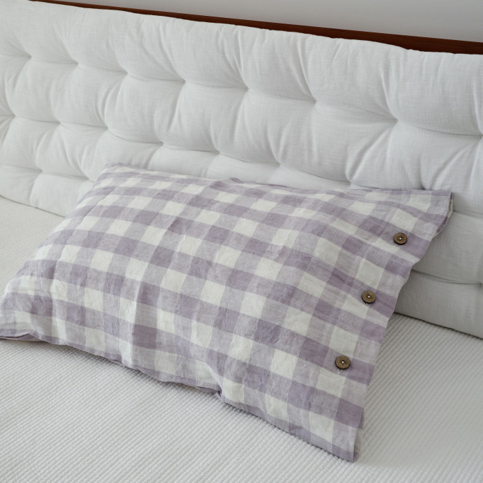 法國進口純亞麻水洗色織麻淺紫色格子單人信封枕套不含芯
