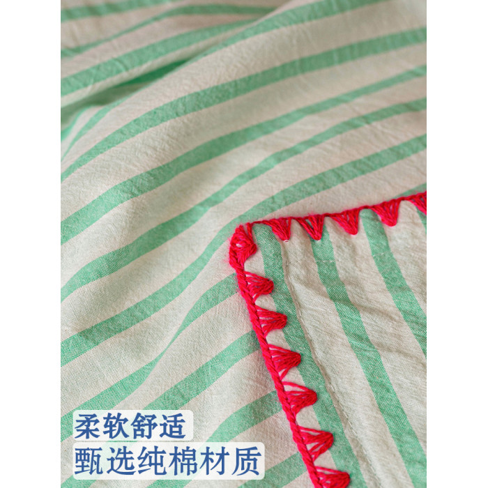 綠色條紋收邊【枕套】單條裝 48×74cm