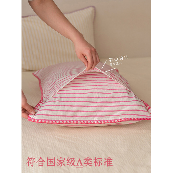 三色條紋收邊A類全棉枕套2025新款純棉枕頭套一對裝48cmx74cm清新