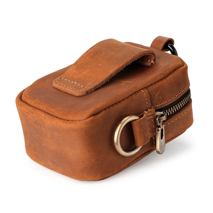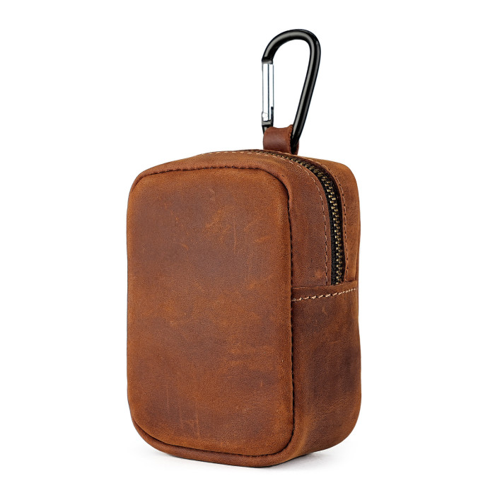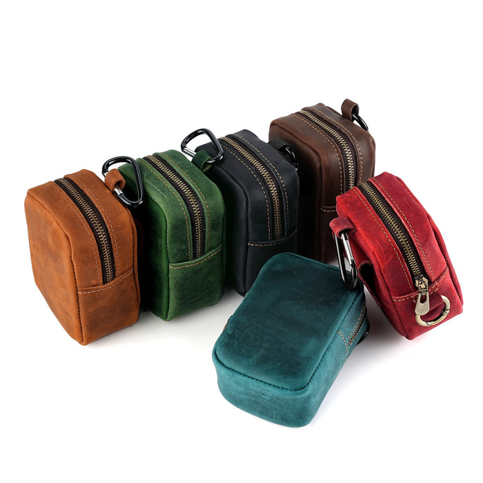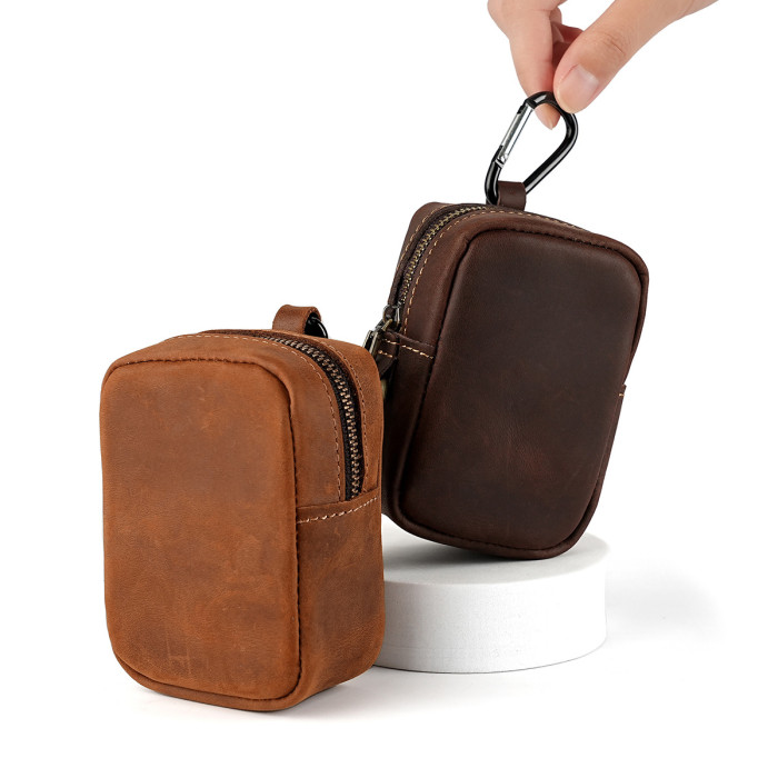 瘋馬皮戶外運動腰間小掛包穿皮帶腰包鑰匙包收納零錢包真皮香菸包