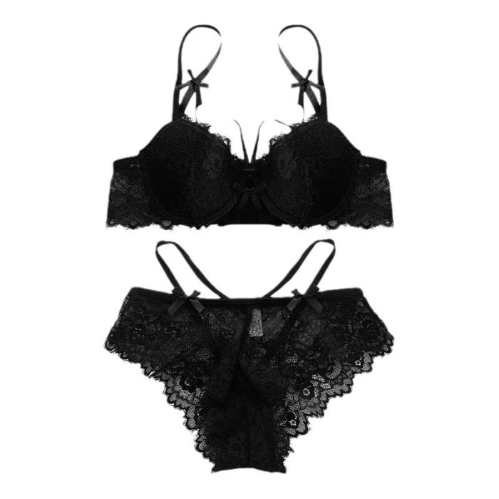 法式浪漫蝴蝶結文胸套裝純欲少女內衣帶鋼圈上托舒適透氣胸罩