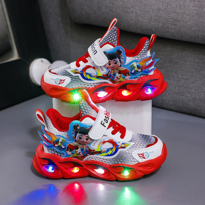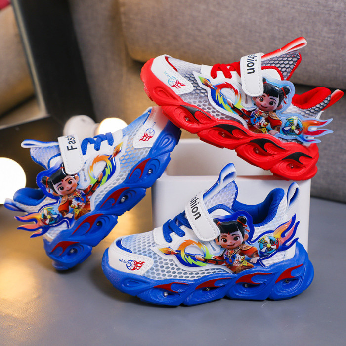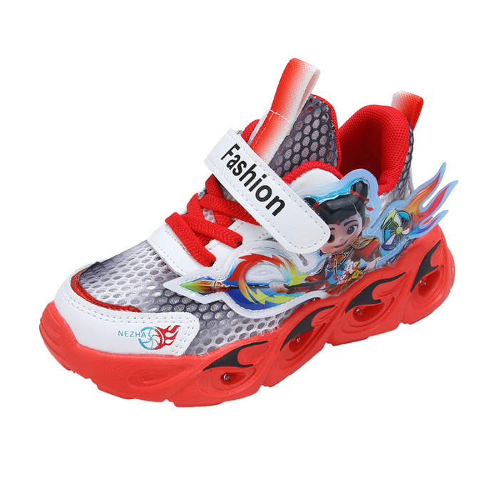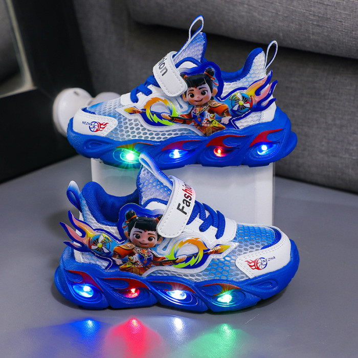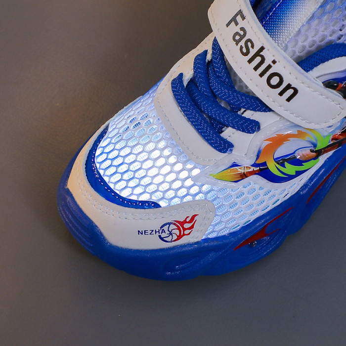 帶燈寶寶運動鞋夏季新款兒童卡通透氣單網小童鏤空休閒鞋