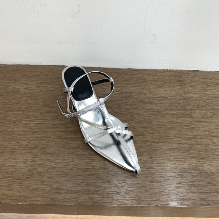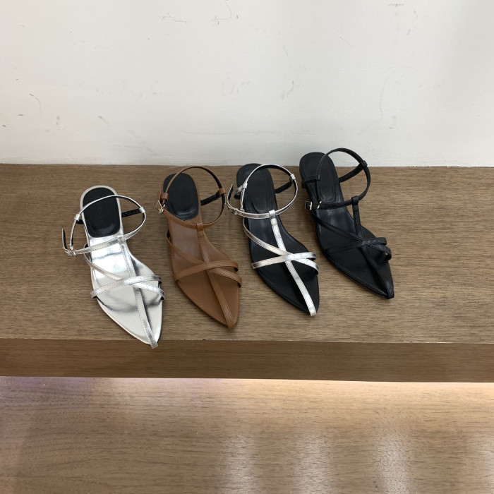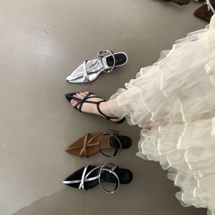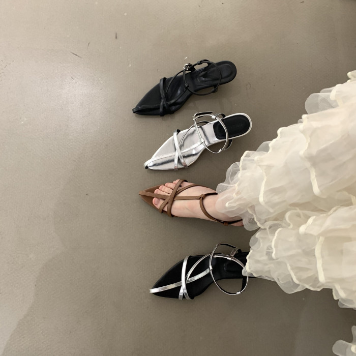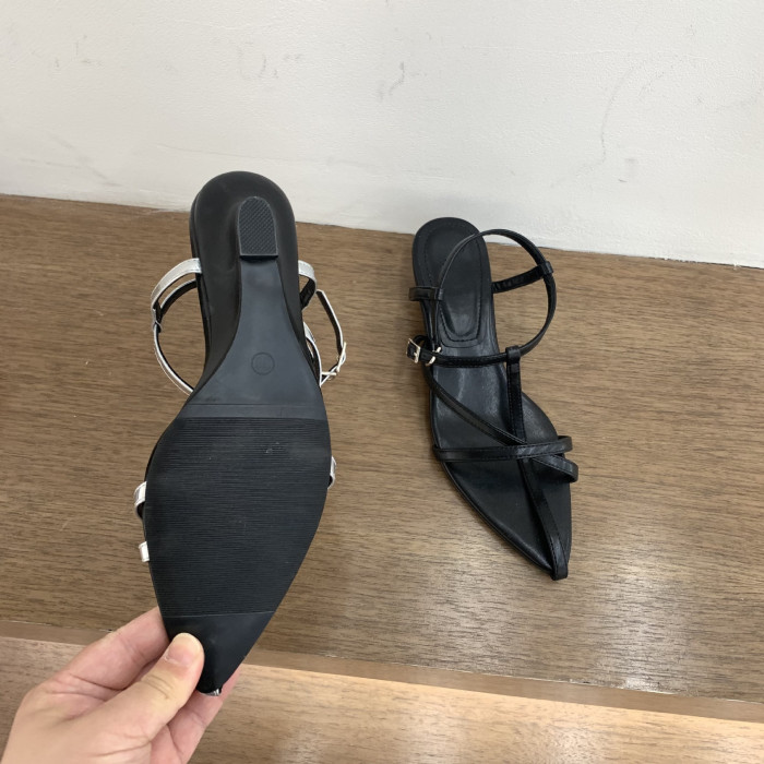法式尖頭露趾個性坡跟一字帶涼鞋女2025年夏季仙女風搭釦羅馬鞋子