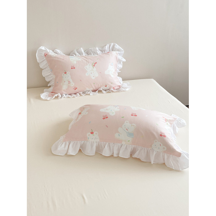 甜甜熊可麗 少女心原創甜美小熊全棉枕套花邊款粉色枕芯罩單衹裝