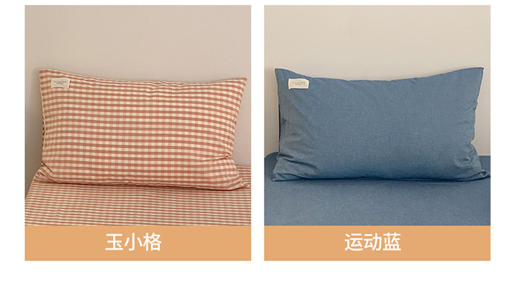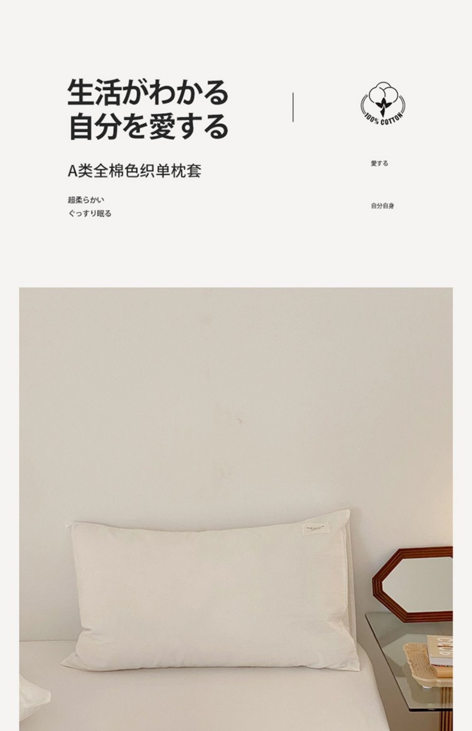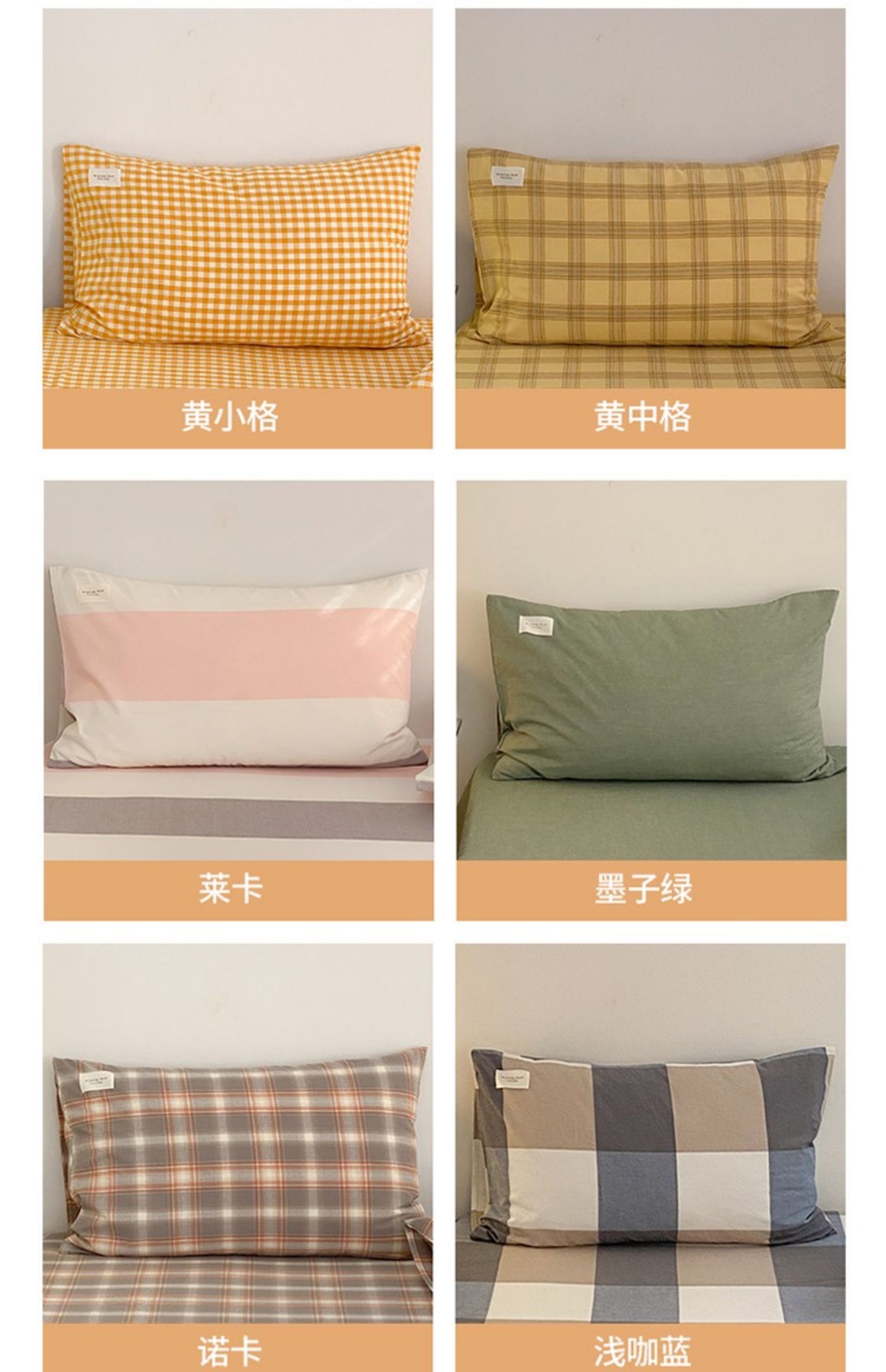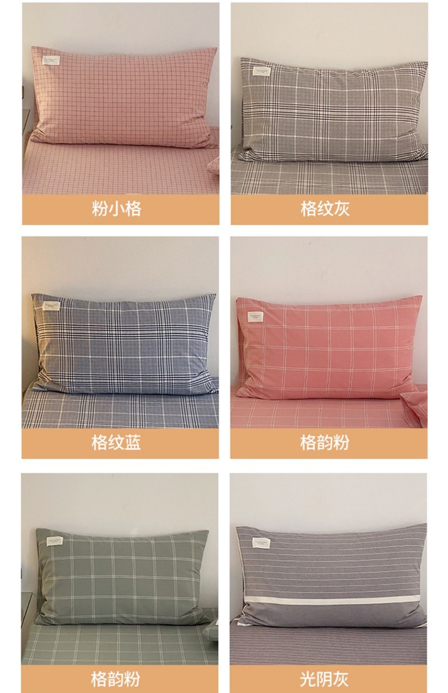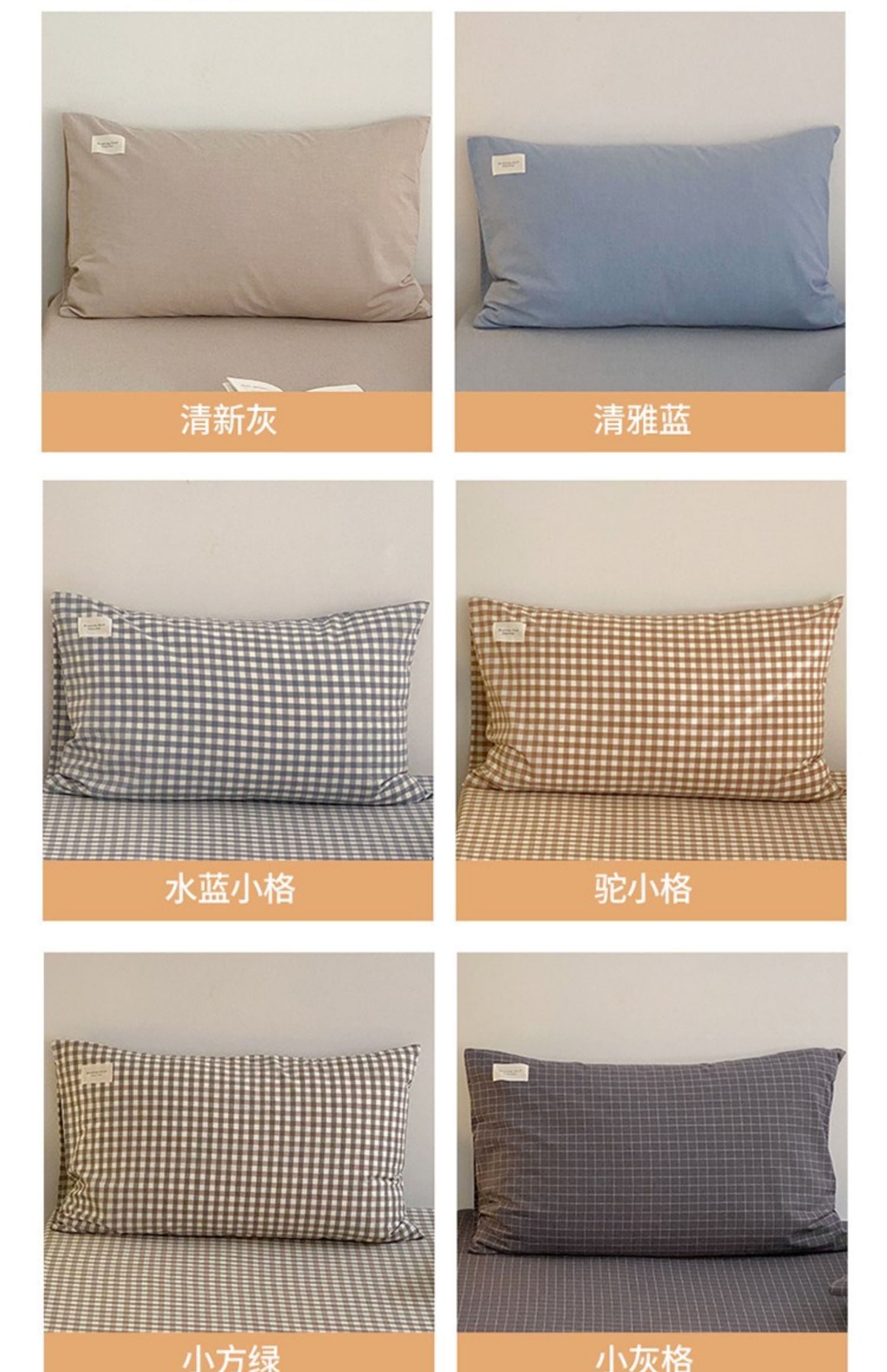 全棉100水洗棉枕套純棉純色格子48*74cm侘寂良品單人枕頭套一衹裝