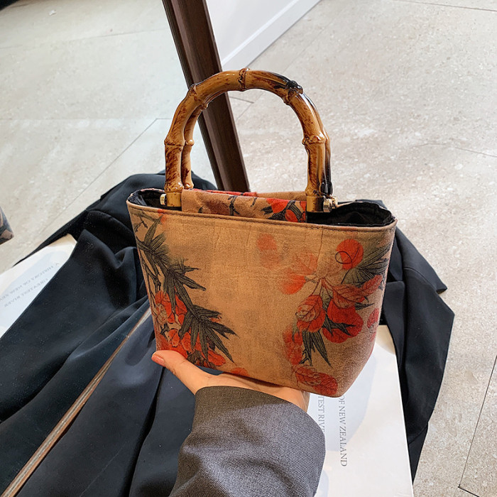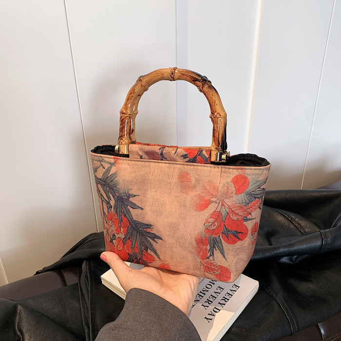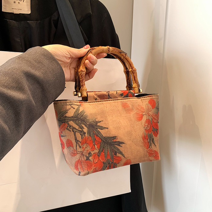 竹節手提小包包女士2024春夏新款國風新中式旗袍包漢服木柄手拎包
