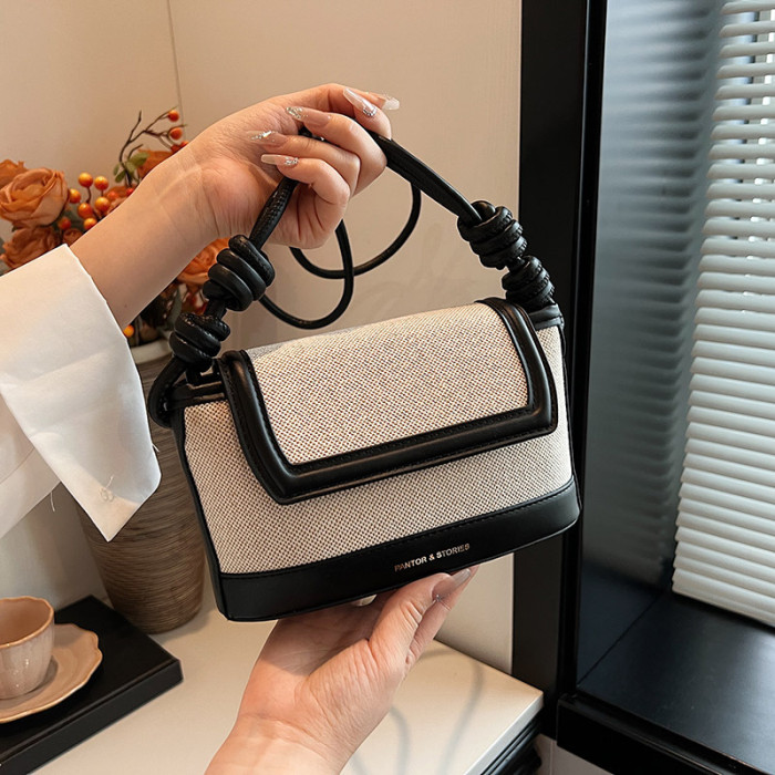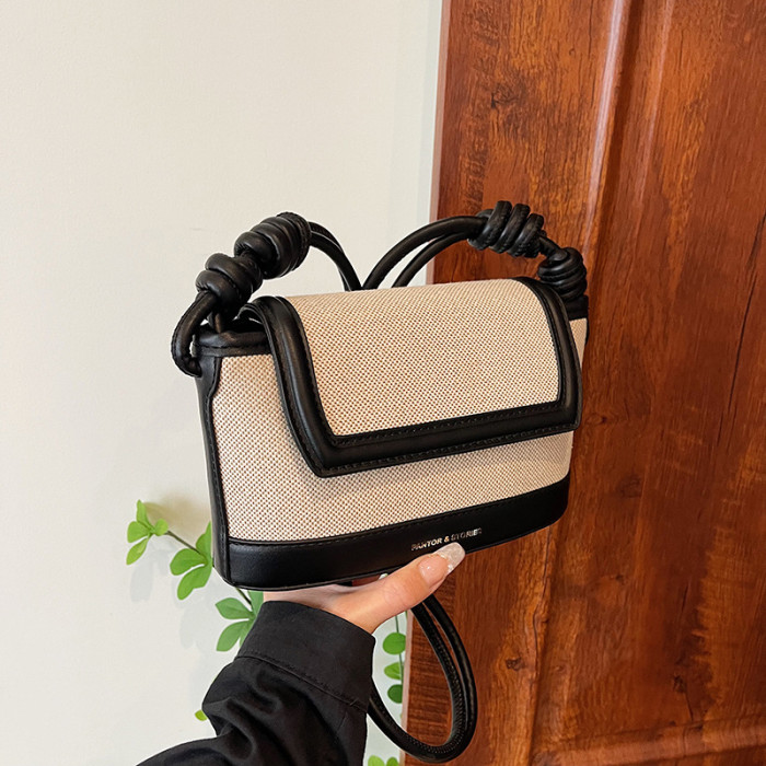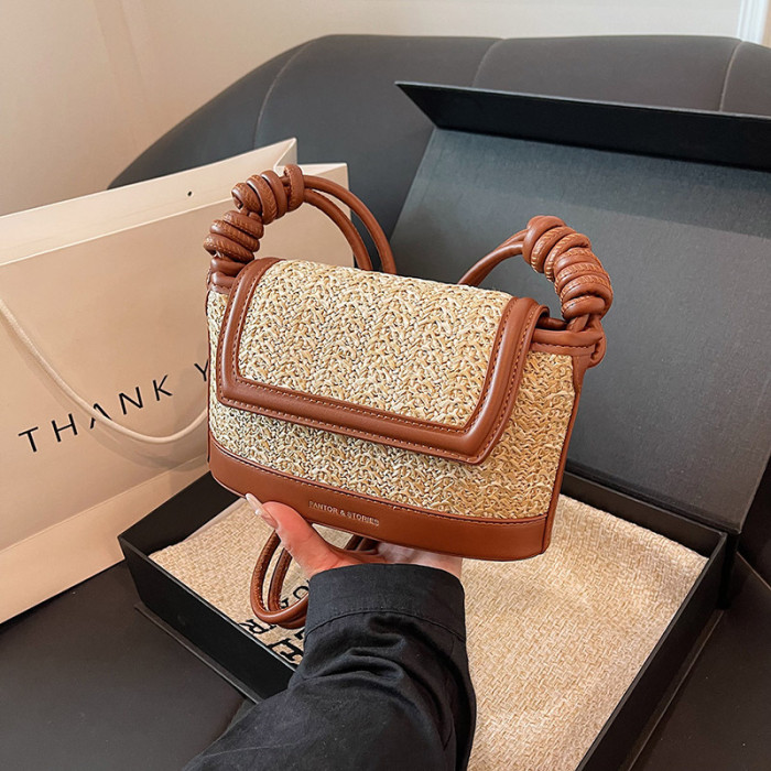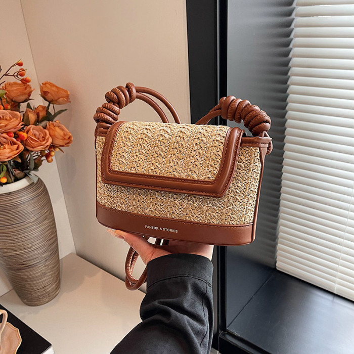 今年流行草編織包包女2024新款小衆pu拼接撞色個性通勤單肩斜後背包