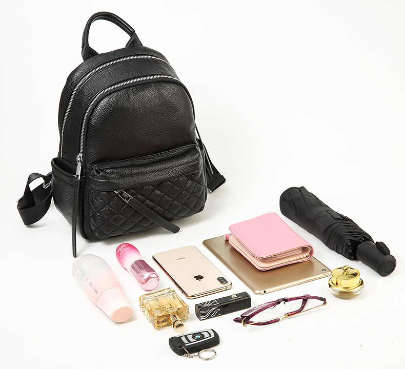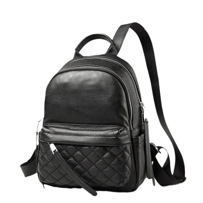 真皮雙肩包女2024新款時尚大容量菱格雙肩後背包通勤旅行女士後背包女包Tenm京東抖音拼多多