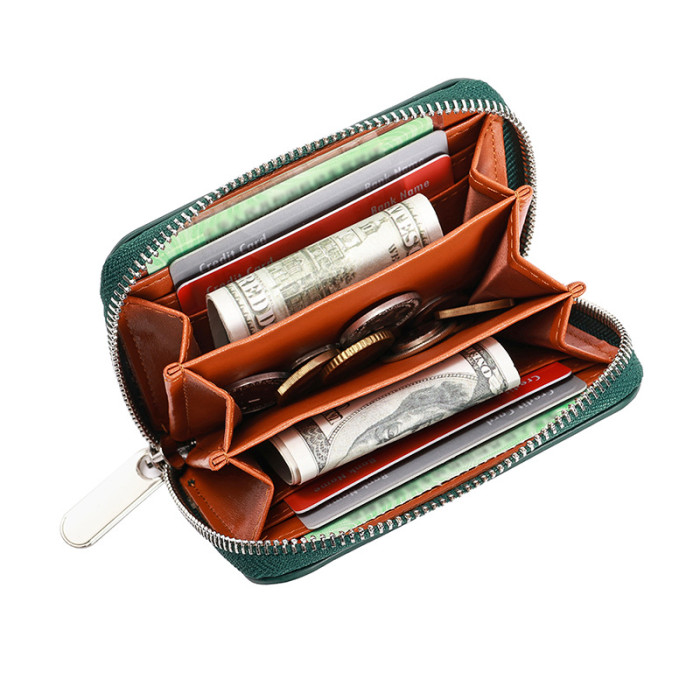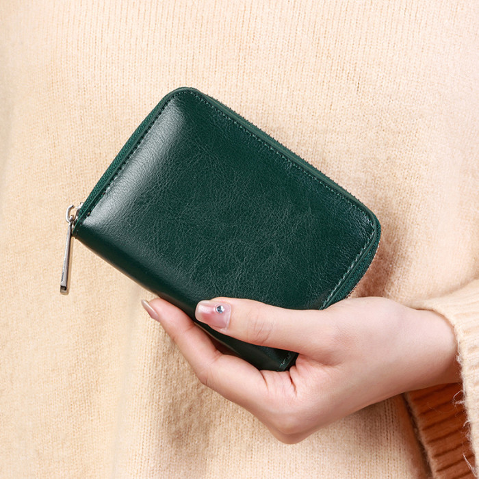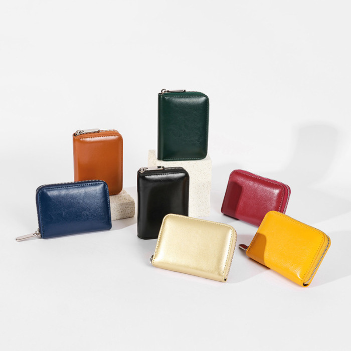 日式新款真皮短款女士錢包 牛皮拉鍊小錢包 男士零錢包硬幣收納包