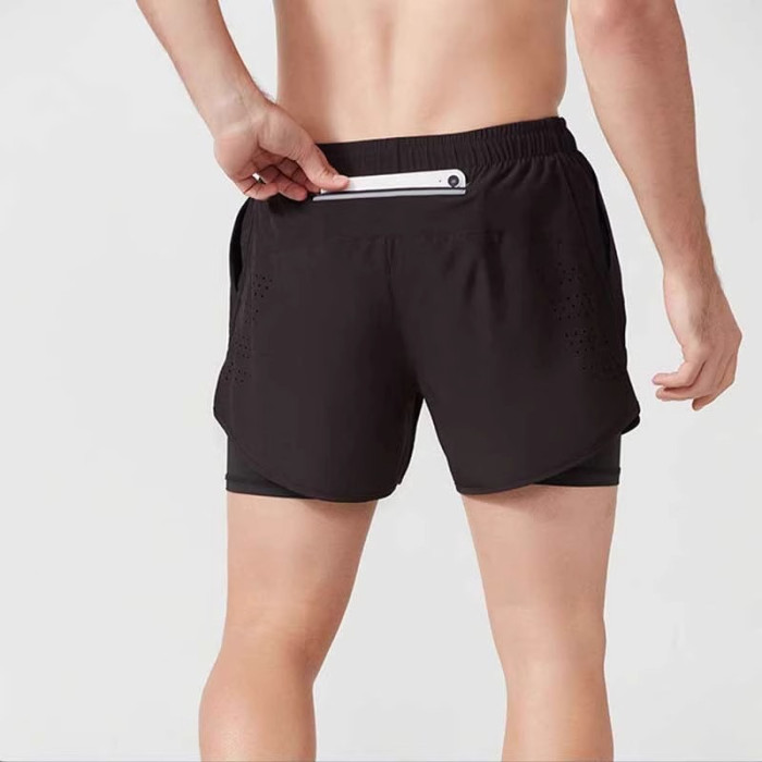 運動跑步短褲男士大碼防走光速乾假兩件體育健身內襯專業可放手機