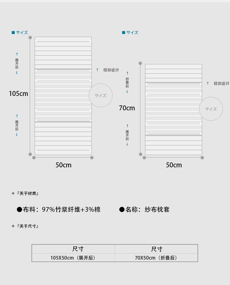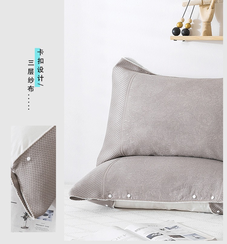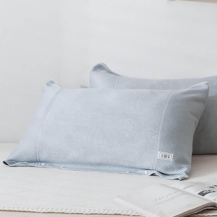 貴妃灰色冰涼卡釦半包枕套一對