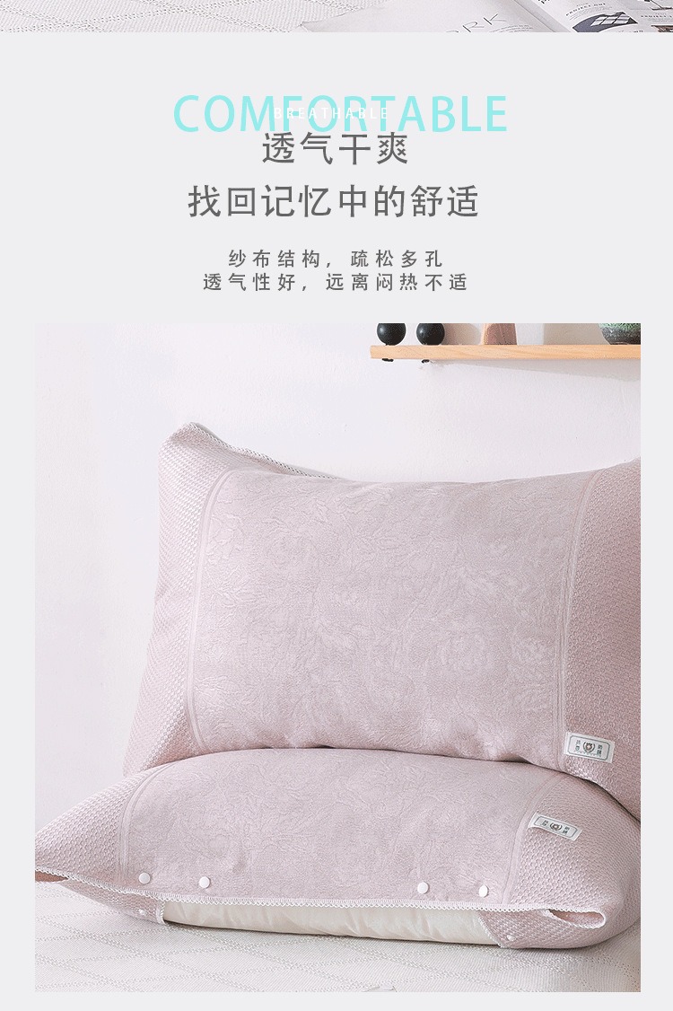貴妃粉色冰涼卡釦半包枕套一對