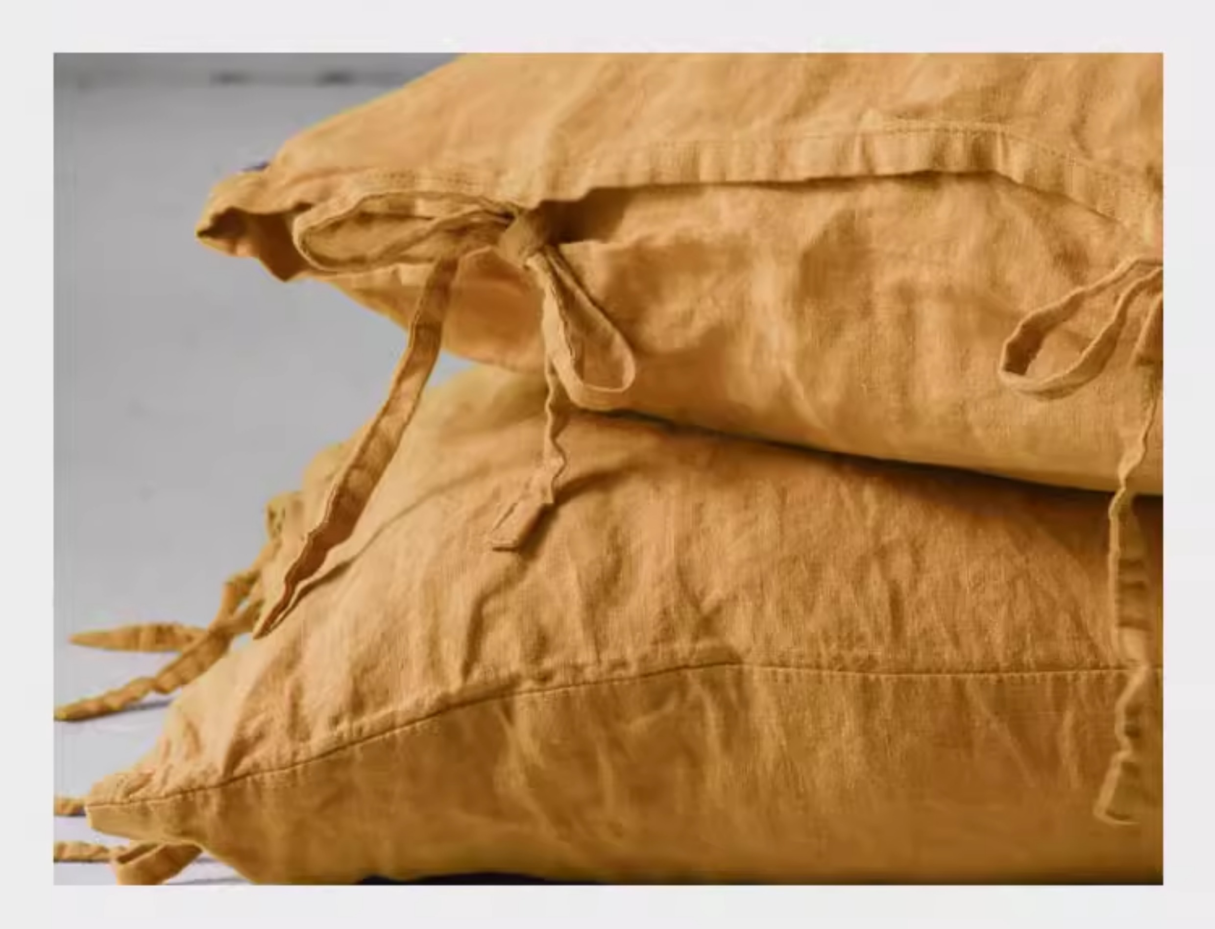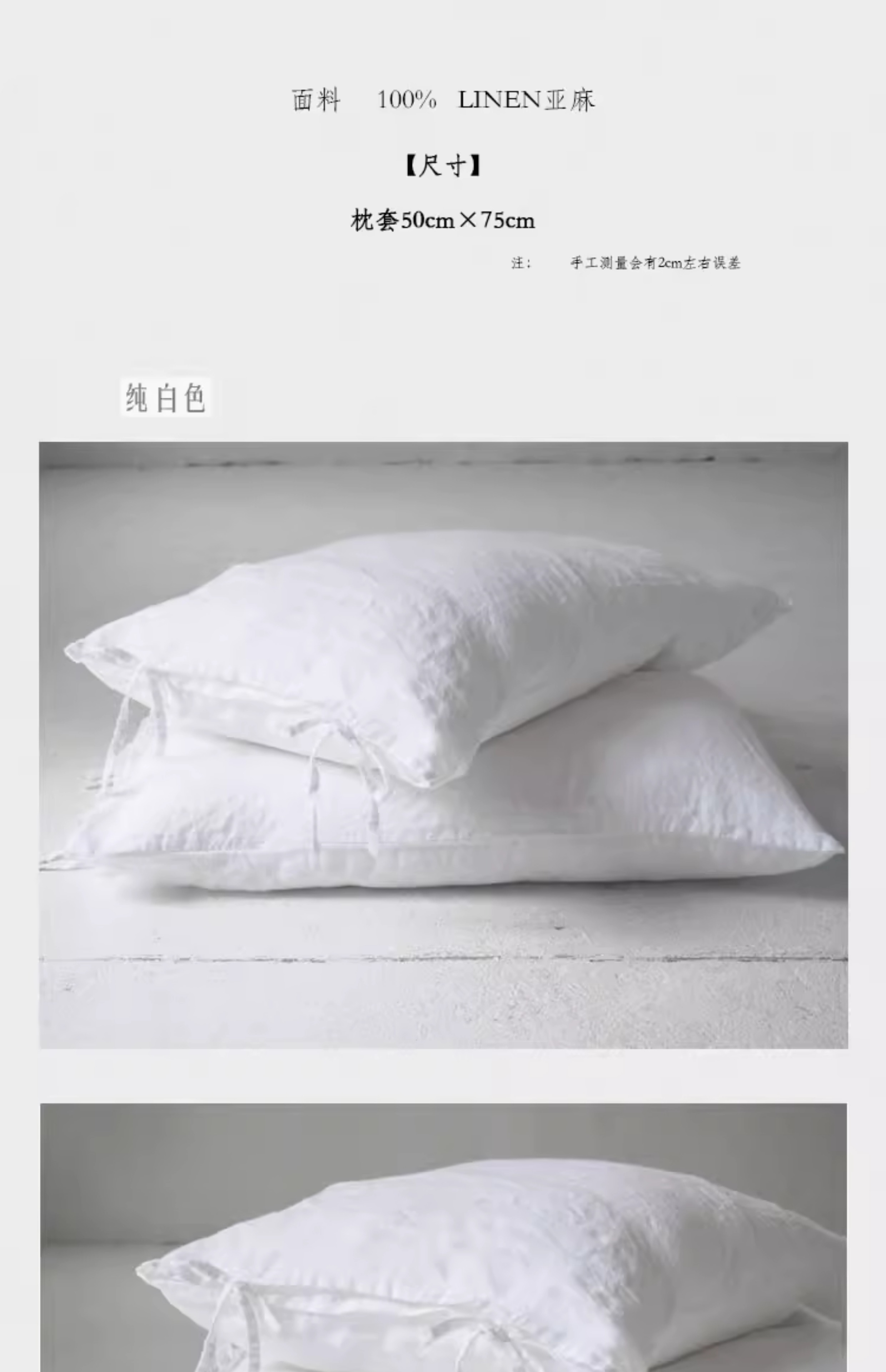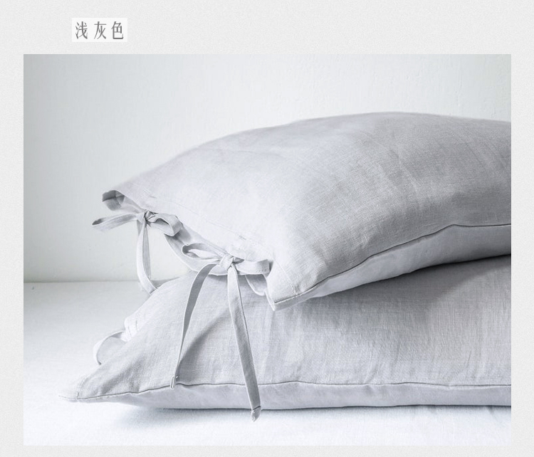 素麻雨巷 比利時進口原料水洗純亞麻枕套單人信封式系綁帶枕套