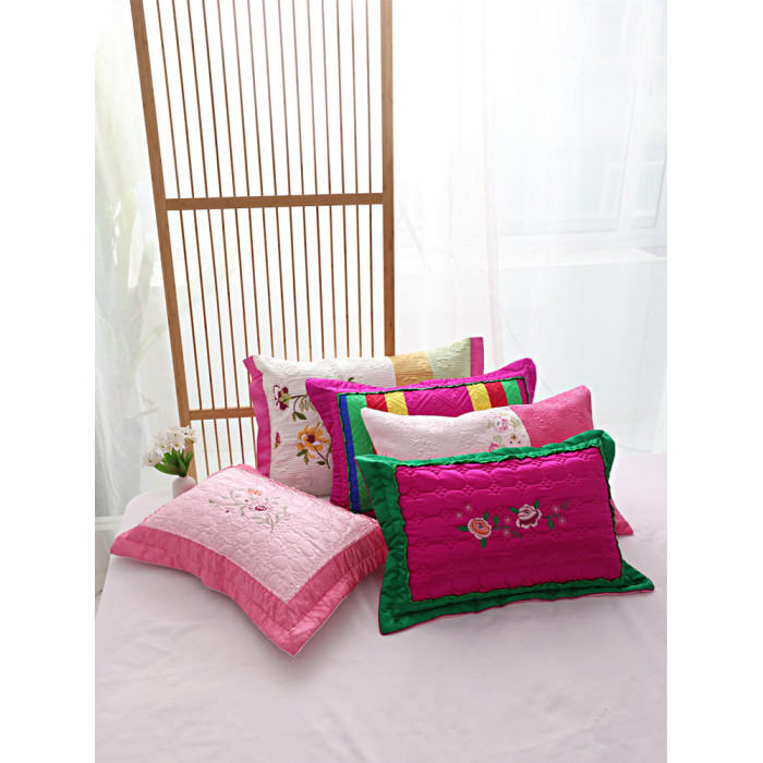 韓國家紡貢緞枕套絲綢真絲枕套純棉七彩枕頭皮韓式枕芯套內膽套