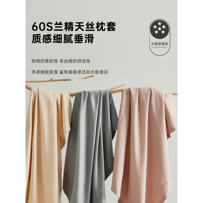 高級感酒店60支天絲純色枕套一對裝夏季冰絲裸睡枕頭套枕芯內膽套