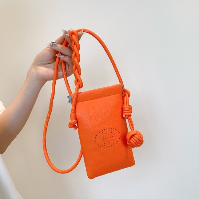2024軟皮小包包新款荔枝紋H字母手機包百搭斜背單肩包包爆款