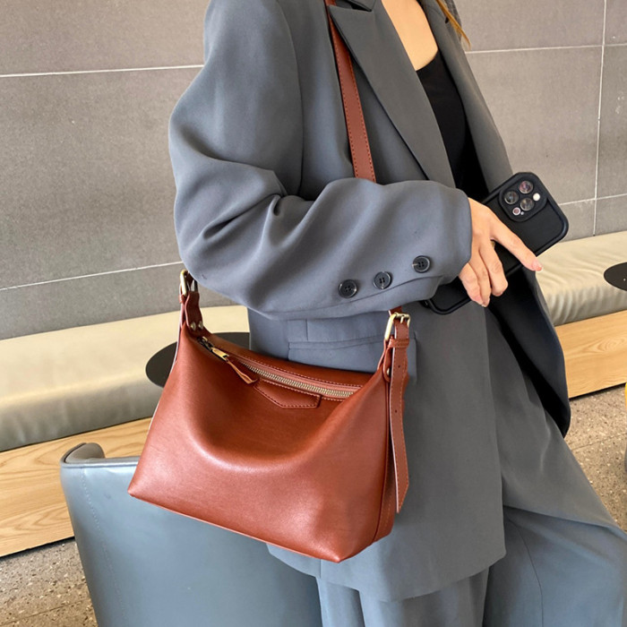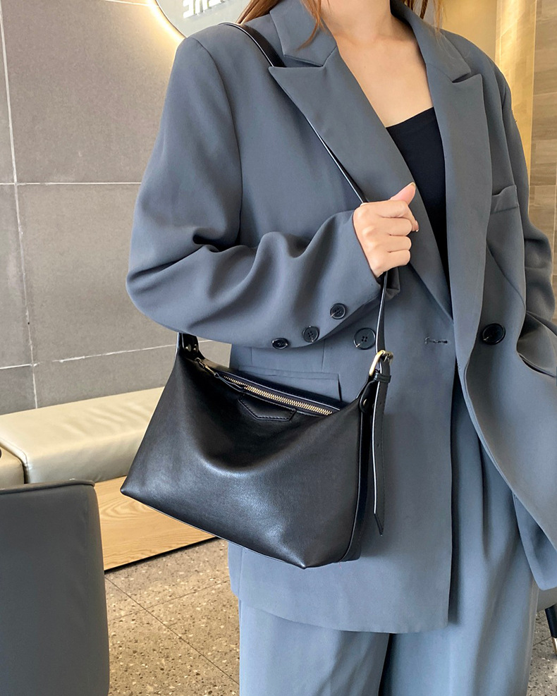 包包女2024新款頭層牛皮通勤百搭斜後背包 高級感真皮單肩枕頭包