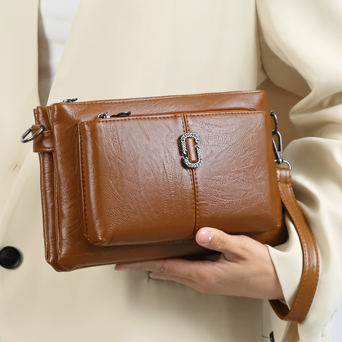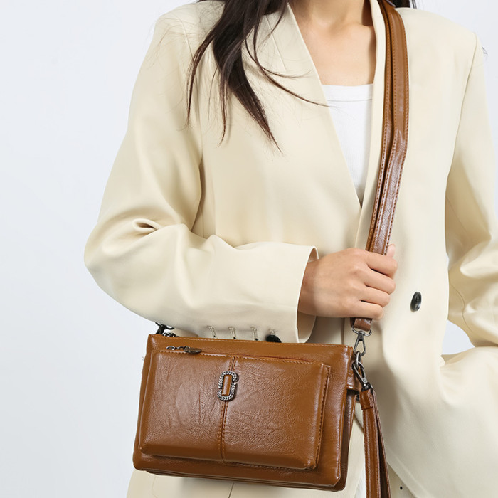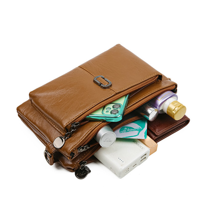 單肩包女士新款手拿包時尚多隔層斜後背包包手機包錢包軟料多用女包