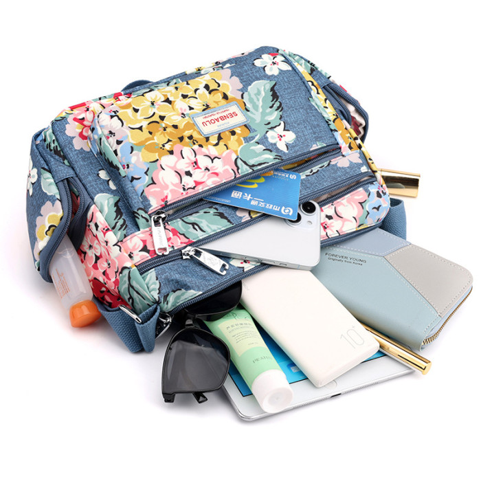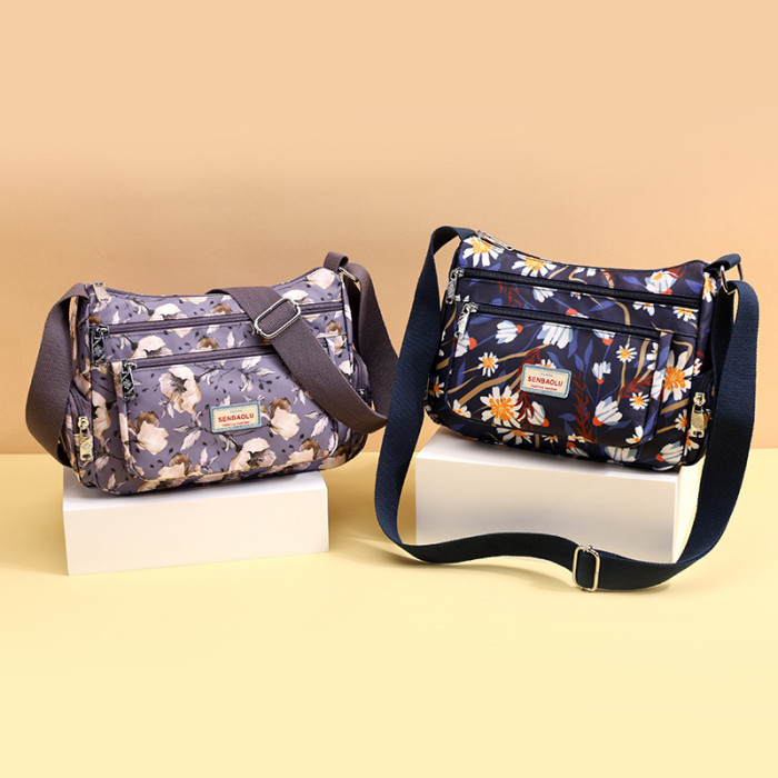 新款潮流印花女士單肩包大容量休閒出行後背包輕便時尚通勤斜後背包