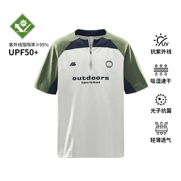 夏季男T恤通勤日系抑菌薄款涼感運動寬松短袖拼接