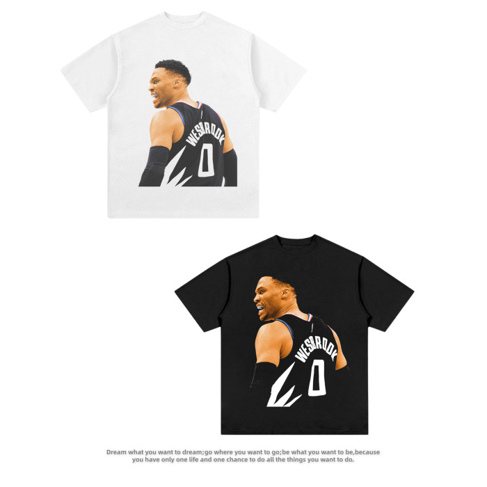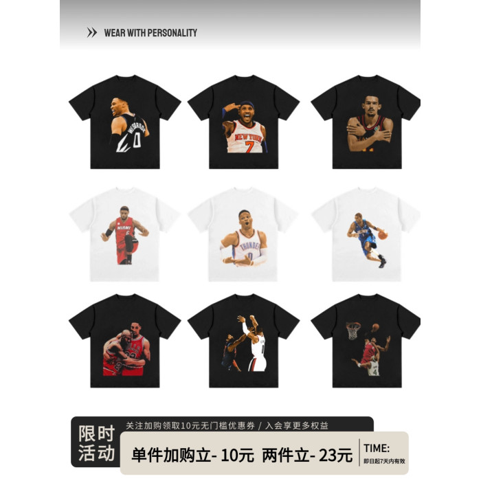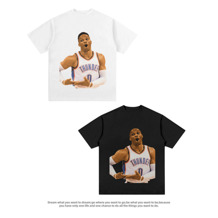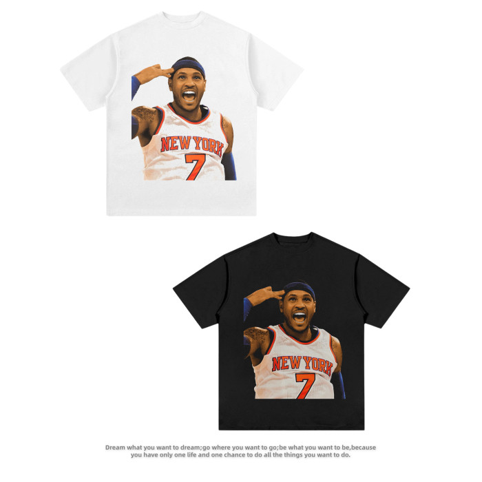 籃球庫里安東尼詹姆斯數碼直噴美式圓領嘻哈vtg潮流純棉短袖男t恤