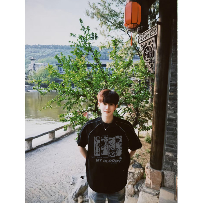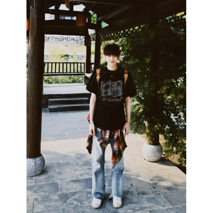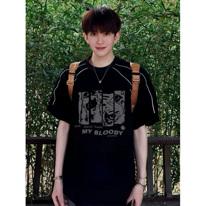 國潮美式高街青少年短袖男t恤2025新款高級感痞帥拼接反光條上衣