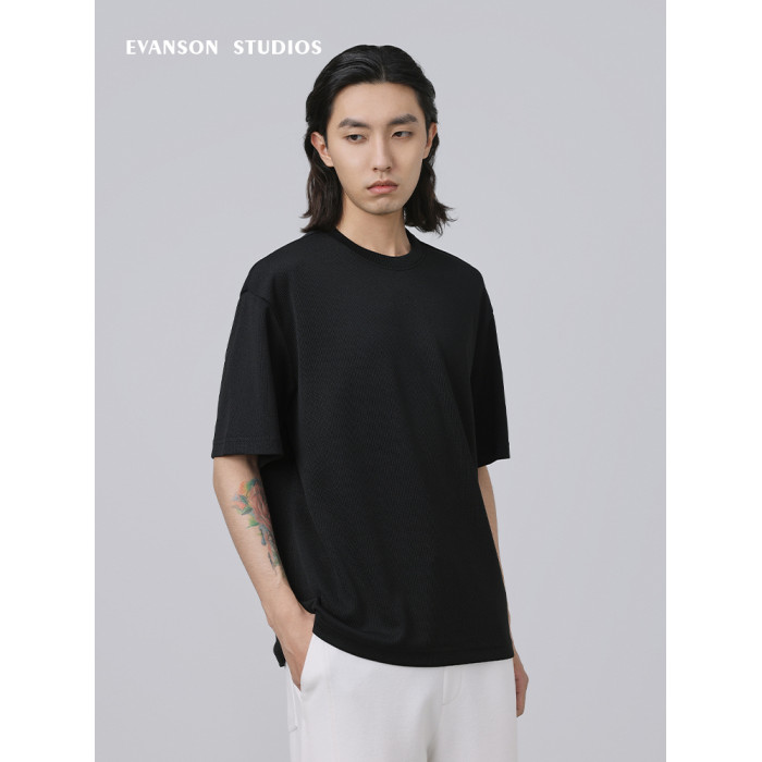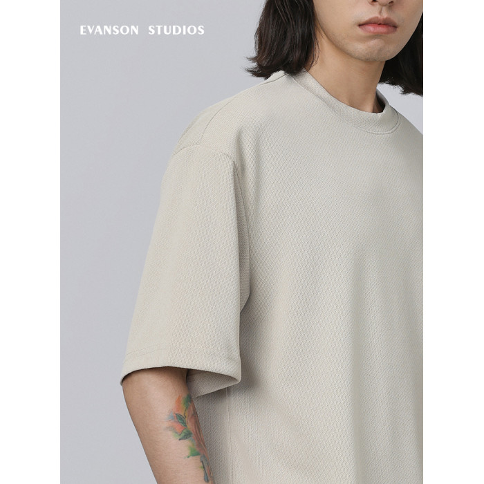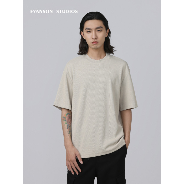 EVANSON/設計師品牌 簡約休閒重磅垂墜感抗皺圓領夏季短袖男T恤